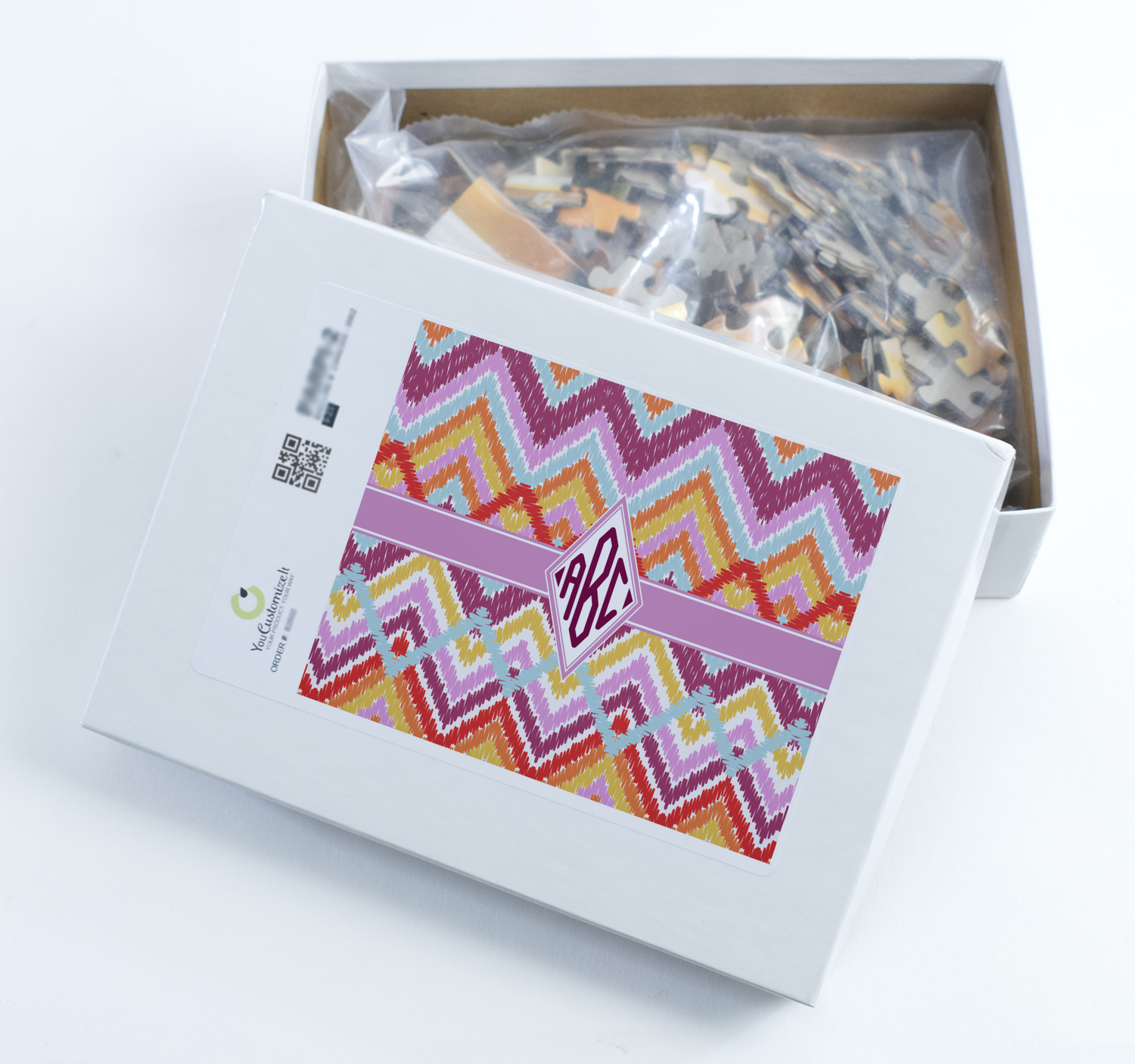 You can also upload your logo or art that you or your kids drew. To create more challenging jigsaw puzzles, you can create a pattern from with your logo or artwork. You can also add other elements such as text or personalization.