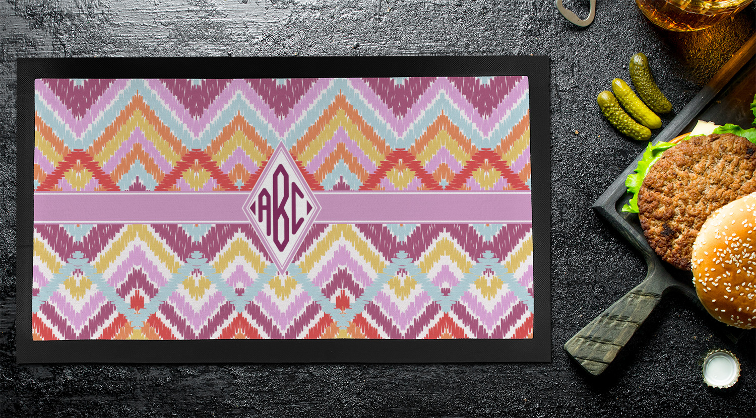 If you are looking for a truly unique design, look no further than Ikat Chevron. This design combines chevron stripes and Ikat patterns. Unlike typical Chevron stripes, these stripes do overlap in parts of the design. The design includes two shades of purple (light violet and plum), light blue, orange,dark yellow and white.