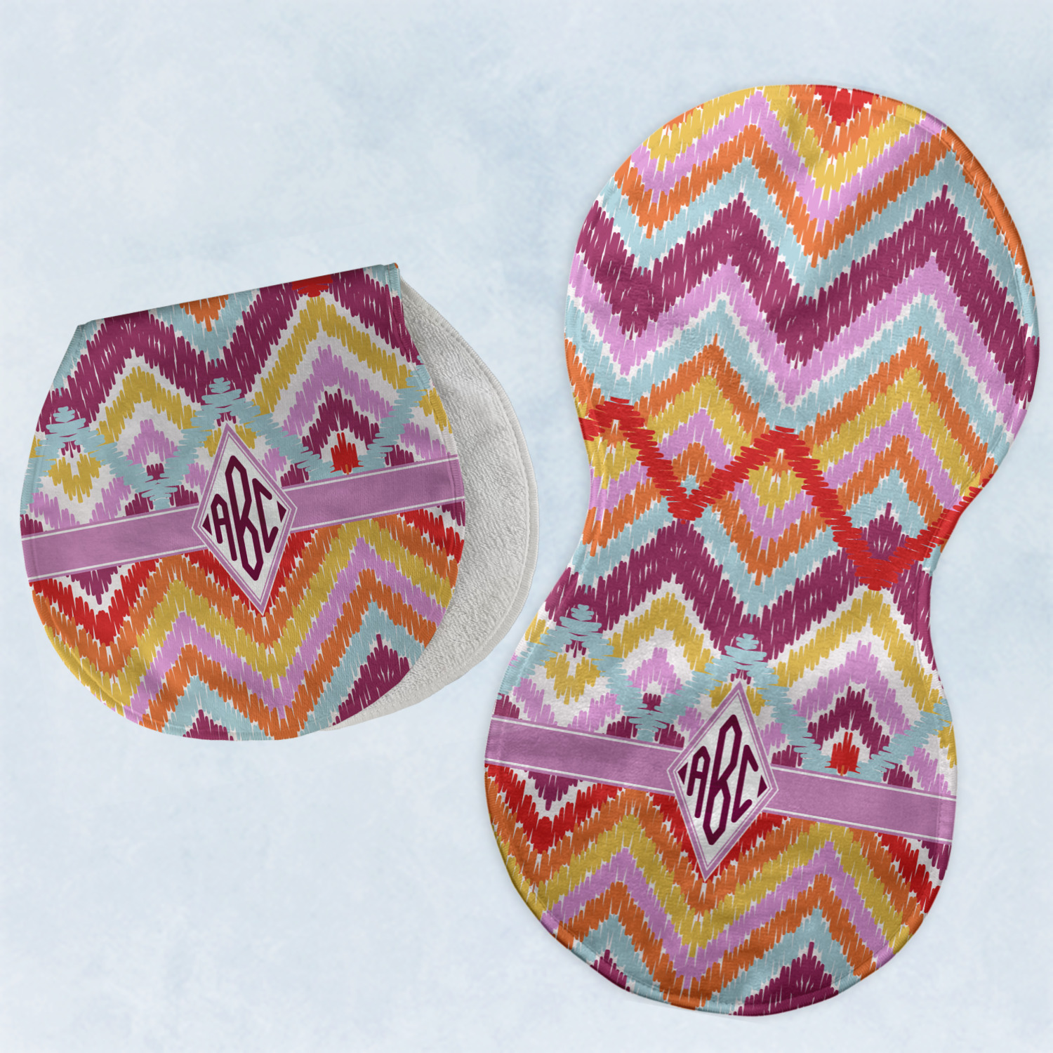 Choose your baby burp cloth from our two styles - Fleece (rectangular) or Microfiber Velour (peanut shape). The lightweight and absorbent design makes each burp cloth multipurpose; use them as a burp pad, a lap pad, a changing table, or a spare cloth to clean up any baby mess. Your customization is displayed across the front with baby-safe ink to ensure extra comfort with a white backing.