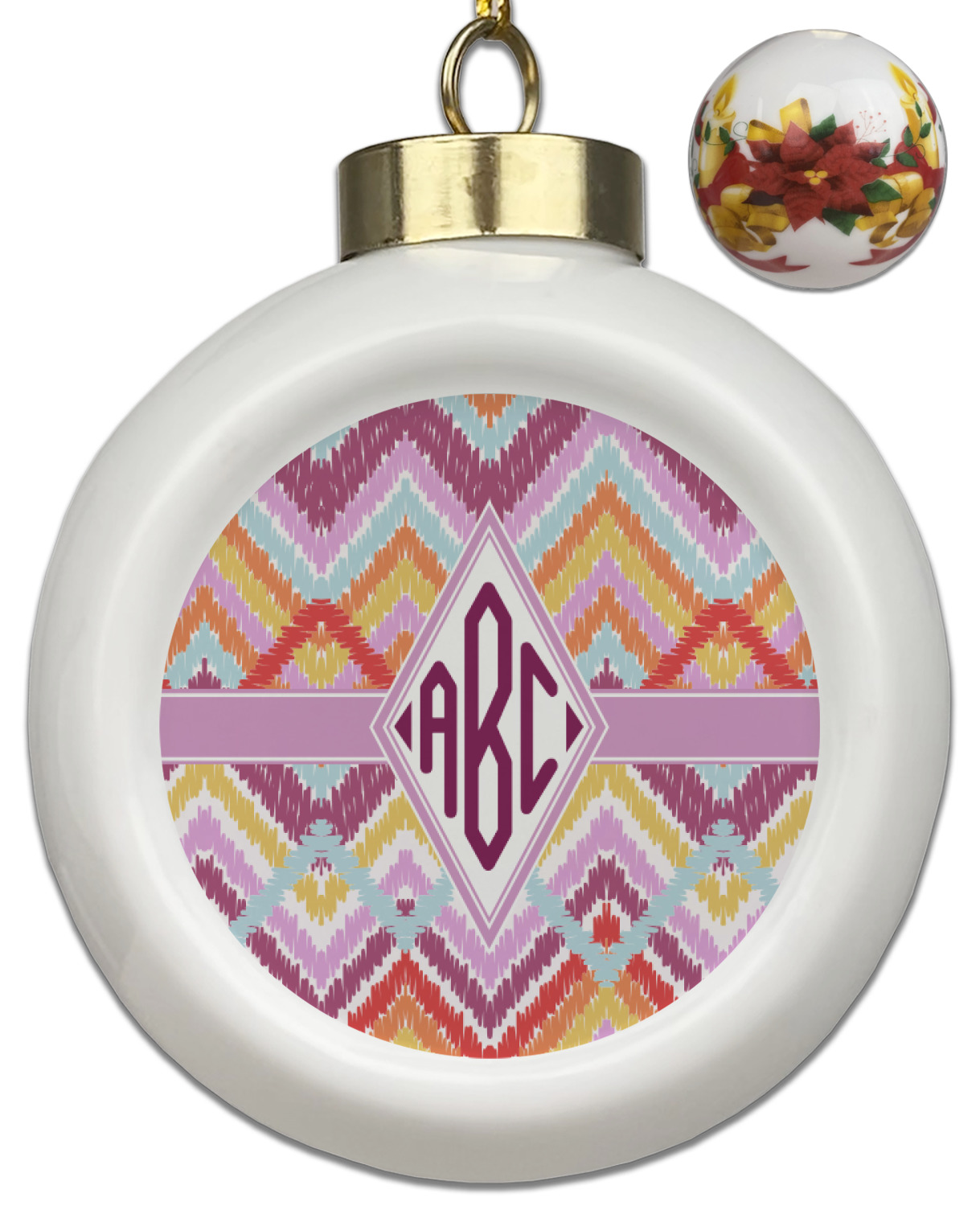 Our Christmas ornaments are a unique ceramic ball shape with a twist as it has a flat face to display your custom design! Select from one of our two design types - Christmas Tree or Poinsettia Garland - to adorn the curved back of your personal design. Each ornament measures 3H x 2.5W x 2D accompanied with a gold string accent for finishing touches to hang on your beautiful Christmas tree!