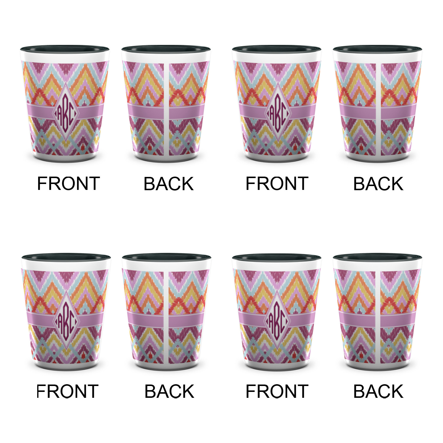 Made from ceramic these shot glasses are printed in full color with the design of your choice. These are a standard 1.5oz size and stand 2.25" tall. Available in a full white ceramic or a two-tone with a black color inside the shot glass. Buy a single or a set of 4, all of which can be designed separately to get you just what you want and need.