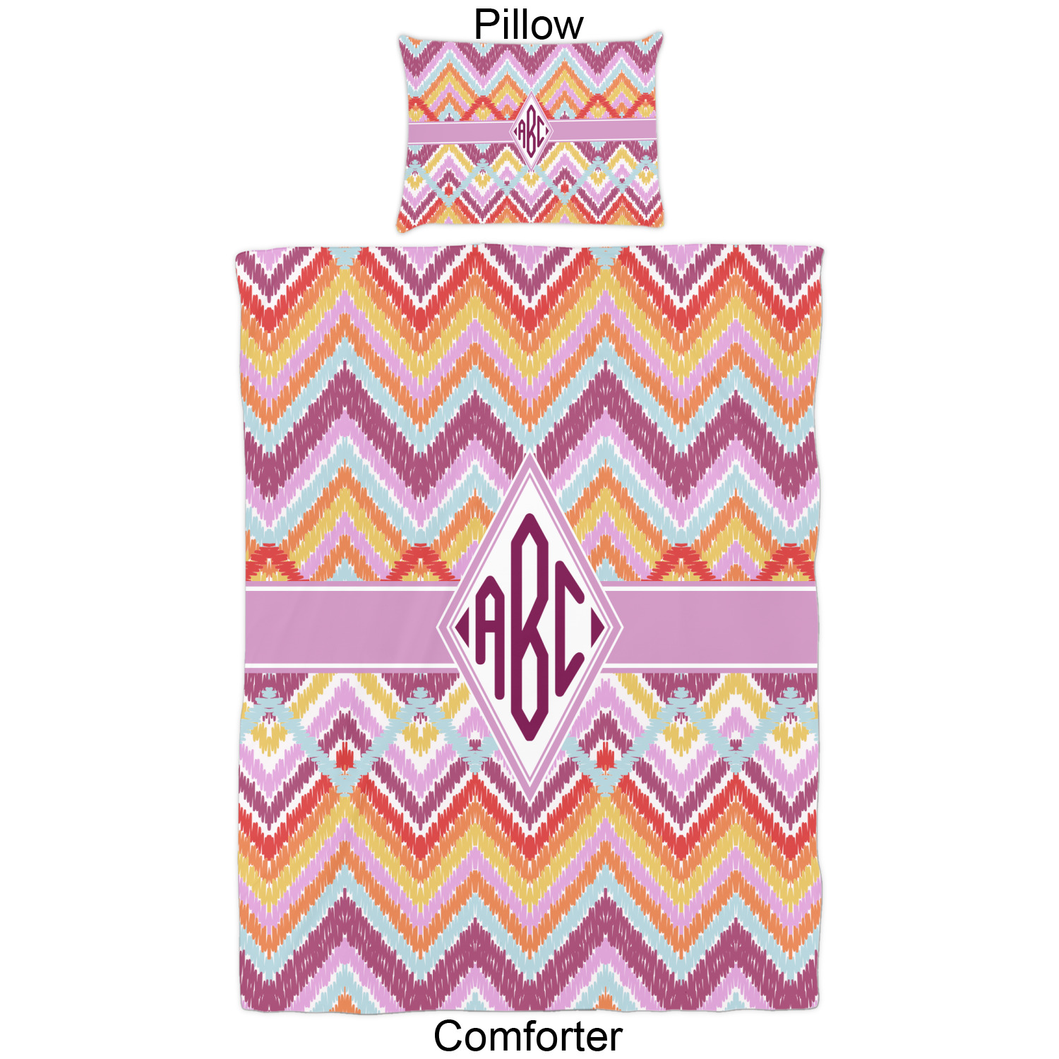 Both, the comforter and shams are digitally printed; all the fabric is then cut and sewn to make your custom comforter or comforter set.