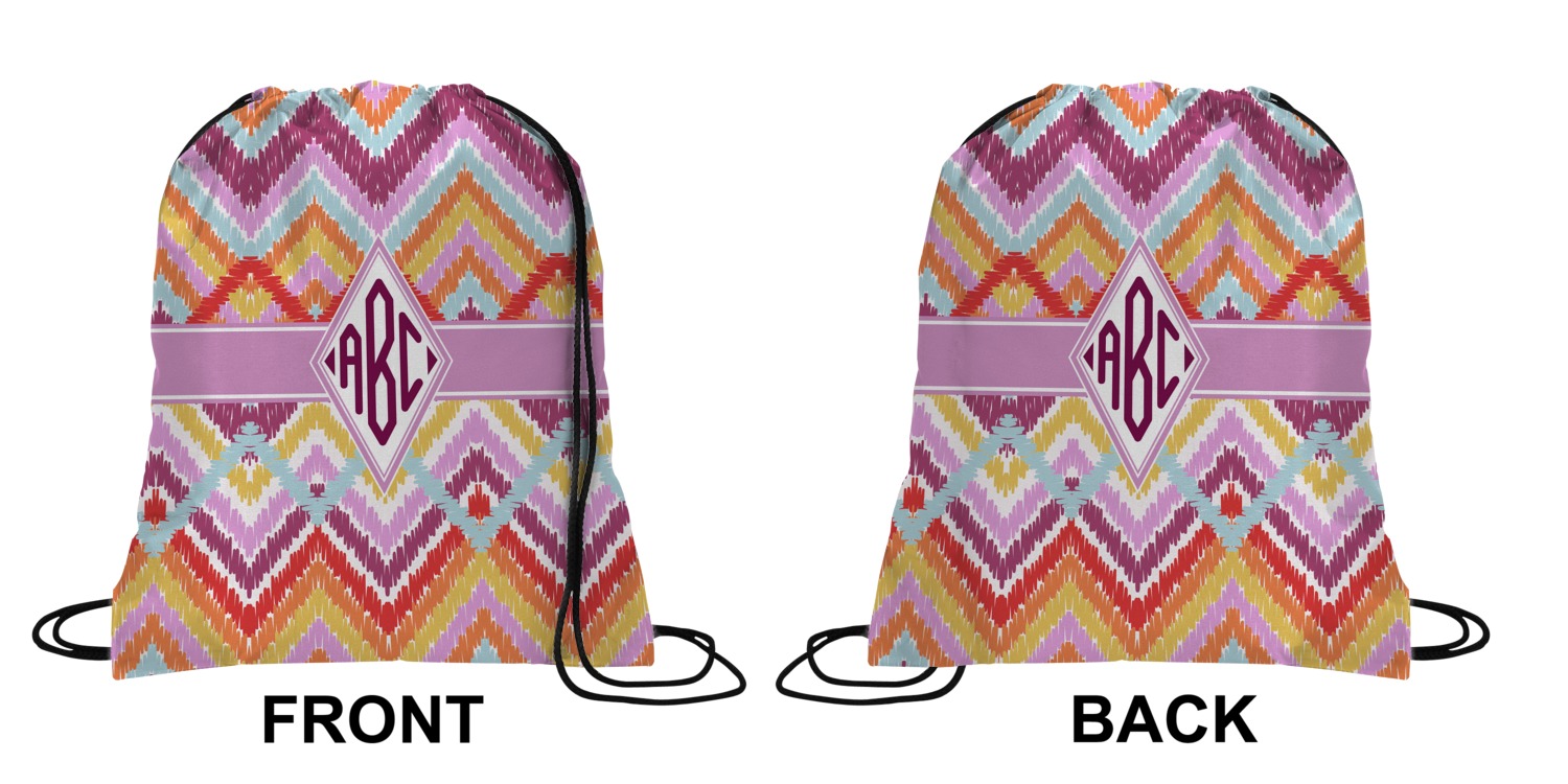Our drawstring backpacks are custom made for you here in the USA. We offer a great selection of cinch bags and it is your choice to personalize them with the text of your choice, in the format of your choice i.e. monogram, name, initial, name & initial. We offer many different patterns and prints; and many of the patterns are available in 45 different colors.