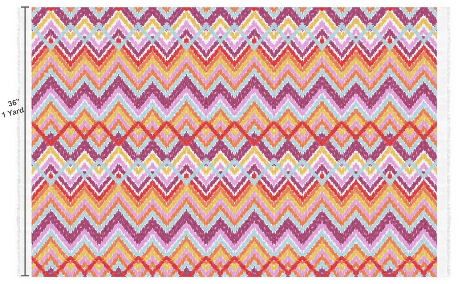 If you are looking for a truly unique design, look no further than Ikat Chevron. This design combines chevron stripes and Ikat patterns. Unlike typical Chevron stripes, these stripes do overlap in parts of the design. The design includes two shades of purple (light violet and plum), light blue, orange,dark yellow and white.
