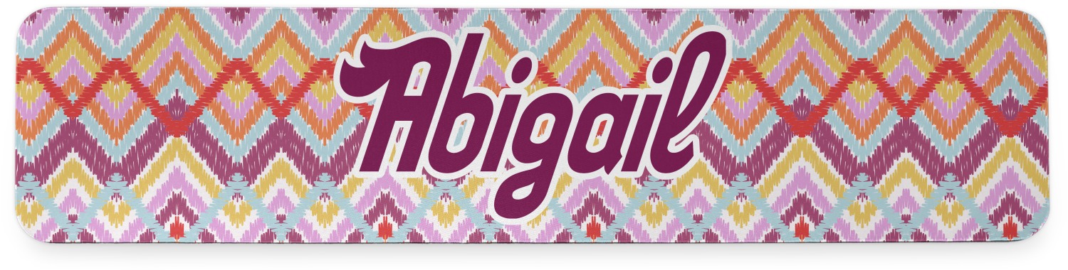If you are looking for a truly unique design, look no further than Ikat Chevron. This design combines chevron stripes and Ikat patterns. Unlike typical Chevron stripes, these stripes do overlap in parts of the design. The design includes two shades of purple (light violet and plum), light blue, orange,dark yellow and white.