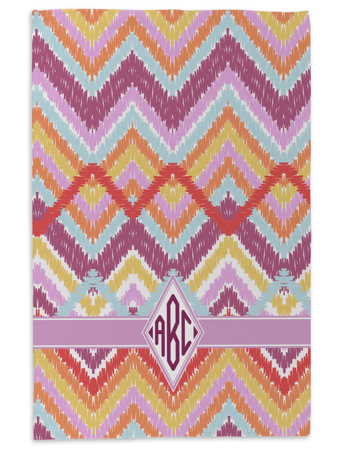 If you are looking for a truly unique design, look no further than Ikat Chevron. This design combines chevron stripes and Ikat patterns. Unlike typical Chevron stripes, these stripes do overlap in parts of the design. The design includes two shades of purple (light violet and plum), light blue, orange,dark yellow and white.