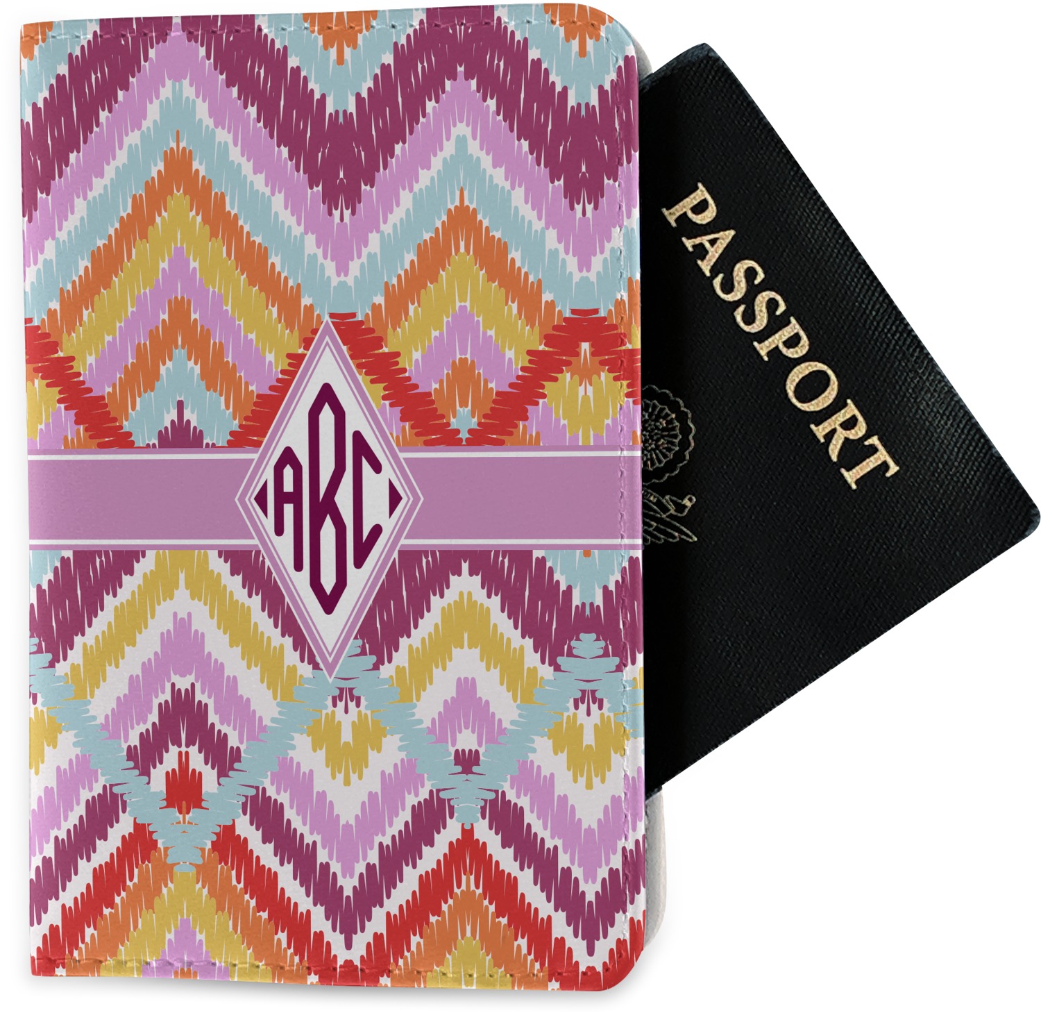 The passport holder has a beautiful inside made of faux leather, while the outside is a smooth slick vinyl like material printed with your personal design.