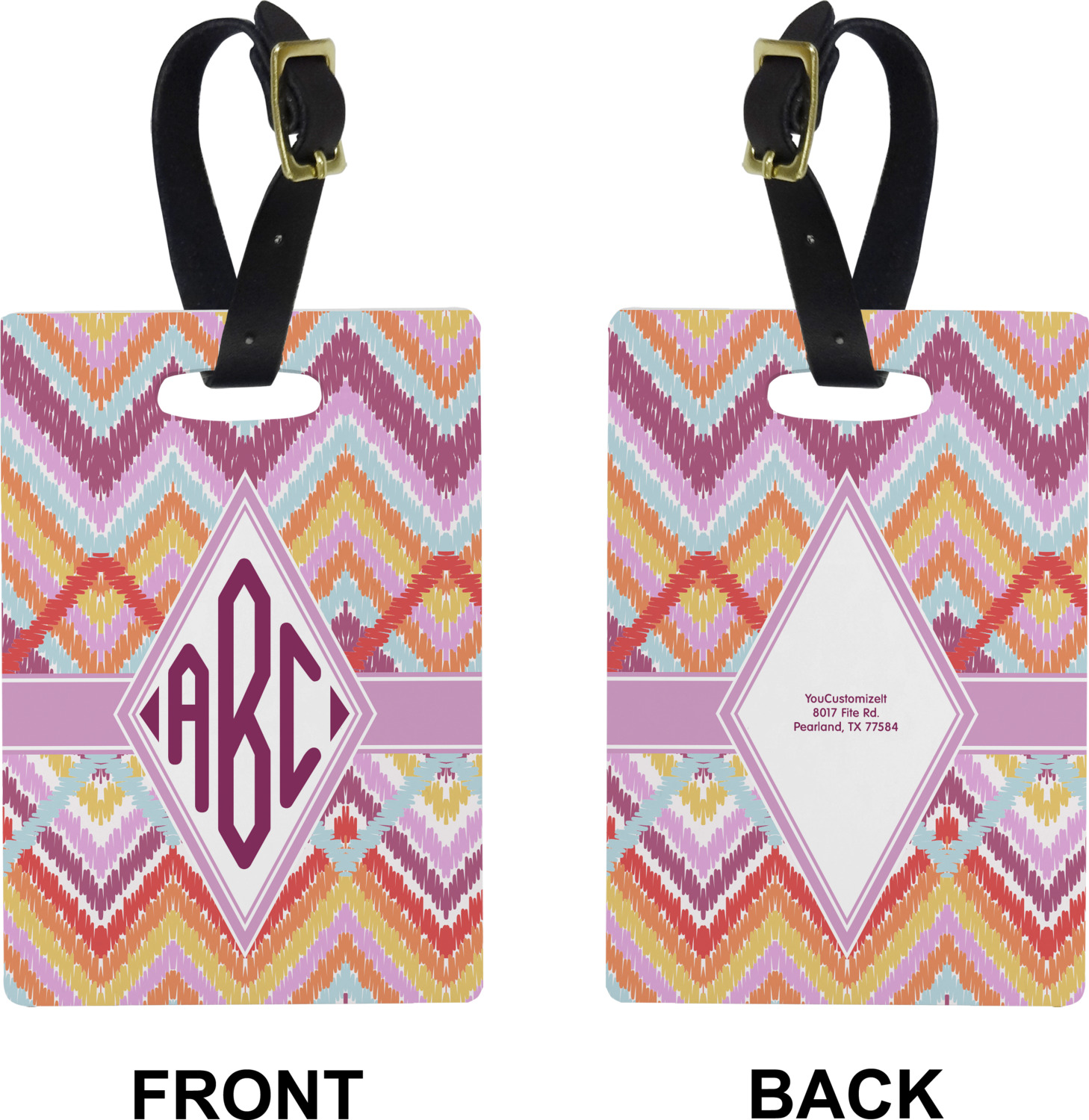 These cute luggage tags are made of a fiber-reinforced, UV-resistant plastic, making them waterproof and durable enough for both everyday use and the rugged adventures of any traveler! A leather strap with holes and a buckle is included with your purchase and can be used to attach your custom luggage tag to any suitcase, backpack, or duffel bag. You can design these travel tags as you wish; your customization will be displayed across the front, while the back will show as little or as much personal information as you want.