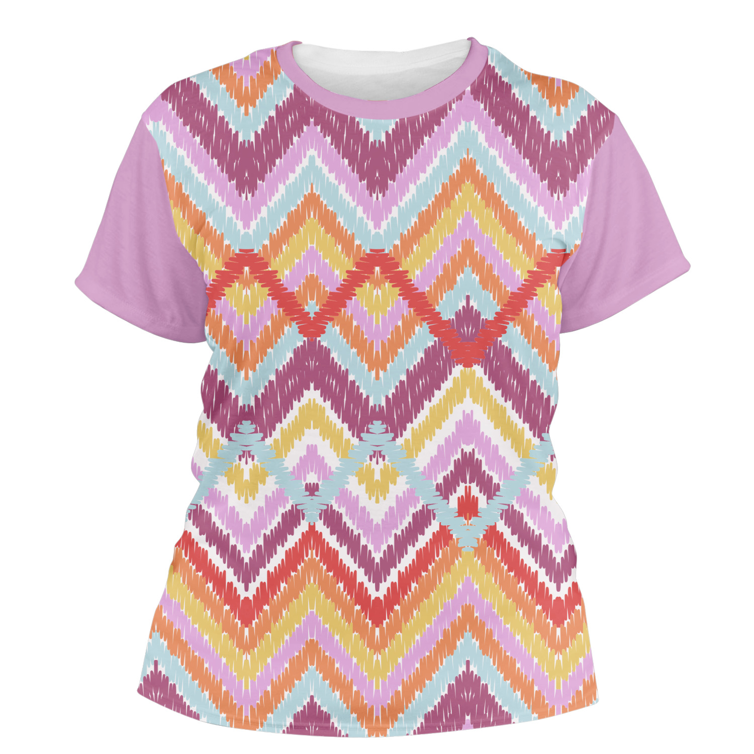 Our womens t-shirts are a lovely jersey knit polyester. They come in 6 different sizes ranging from X-Small to XX-Large. These shirts are your basic comfy crew neck t-shirts that look good on anyone. You are able to personalize the sleeves, front, AND back! Isn't that awesome?! Make everything one color or all different. The choice is yours.