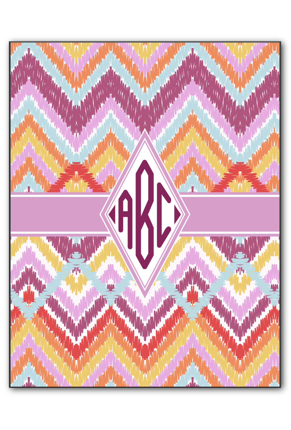 If you are looking for a truly unique design, look no further than Ikat Chevron. This design combines chevron stripes and Ikat patterns. Unlike typical Chevron stripes, these stripes do overlap in parts of the design. The design includes two shades of purple (light violet and plum), light blue, orange,dark yellow and white.
