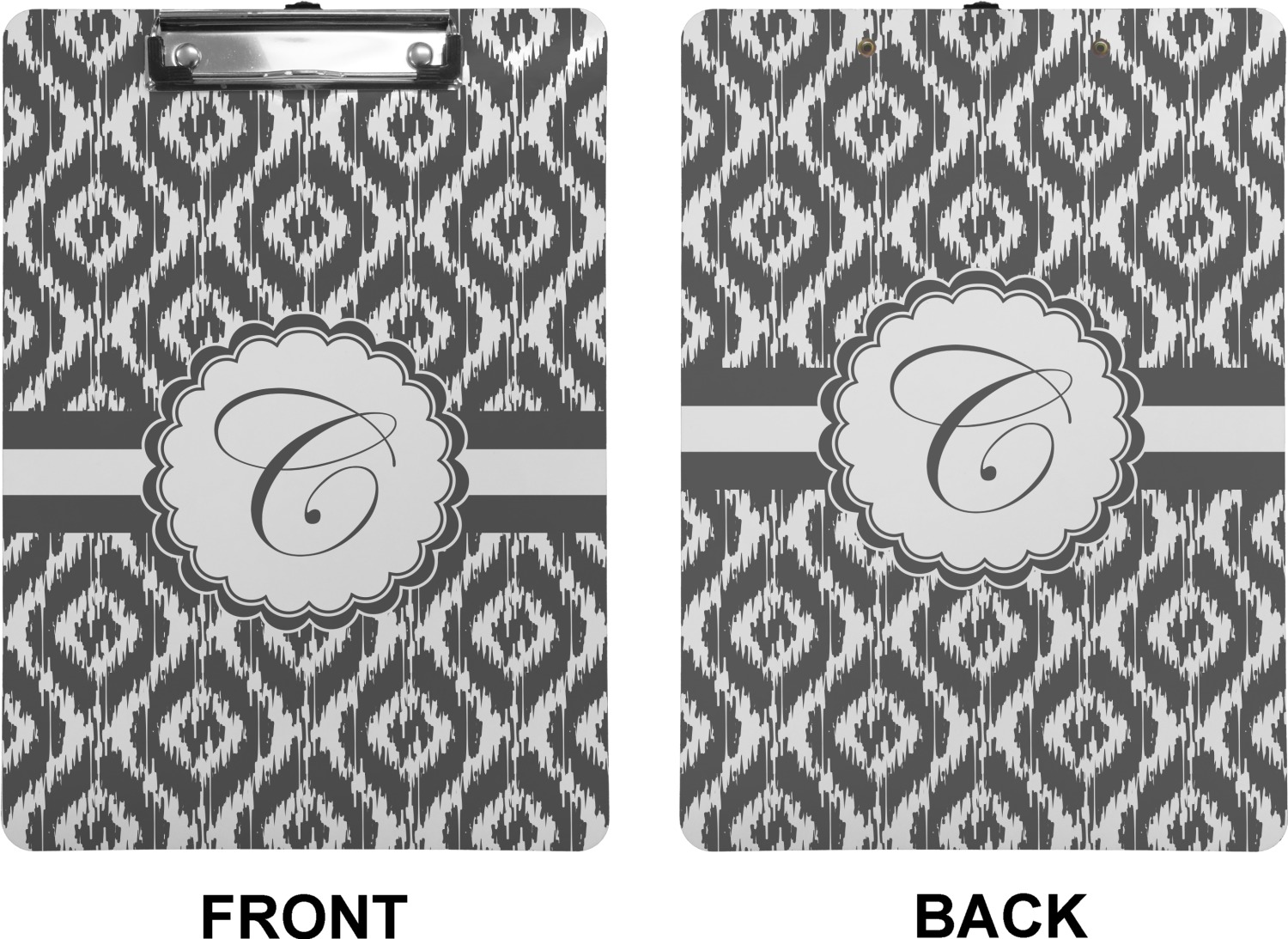 These custom clipboards are made from a strong hardboard and are coated with a glossy finish that accentuates the colors of your design. Alongside a retractable hook at its top, these decorative clipboards also feature sturdy clips to secure several sheets of paper. We sell these clipboards in two separate sizes. Our letter size measures at 12.5" L x 9" W, while our legal clipboard is approximately 15.5" L x 9" W. On both models, your personalization is printed on both sides of this clipboard and can be customized individually.