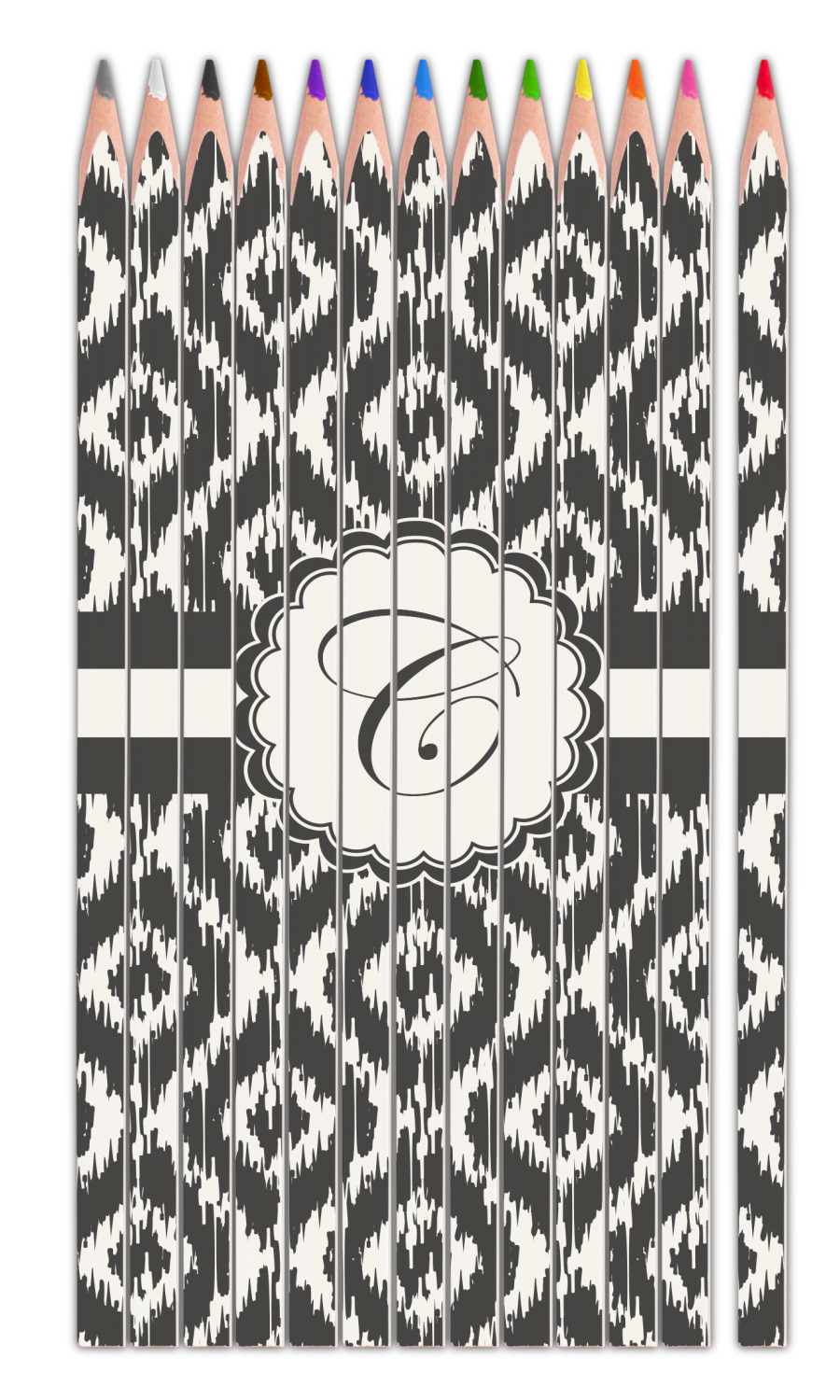 The image / design that you can put on these custom colored pencils is only limited by your imagination. You can upload a photo or logo and then add some text, or you can customize one of our designs and change the patterns, colors, personalization - i.e. name, text, monogram, initial etc.