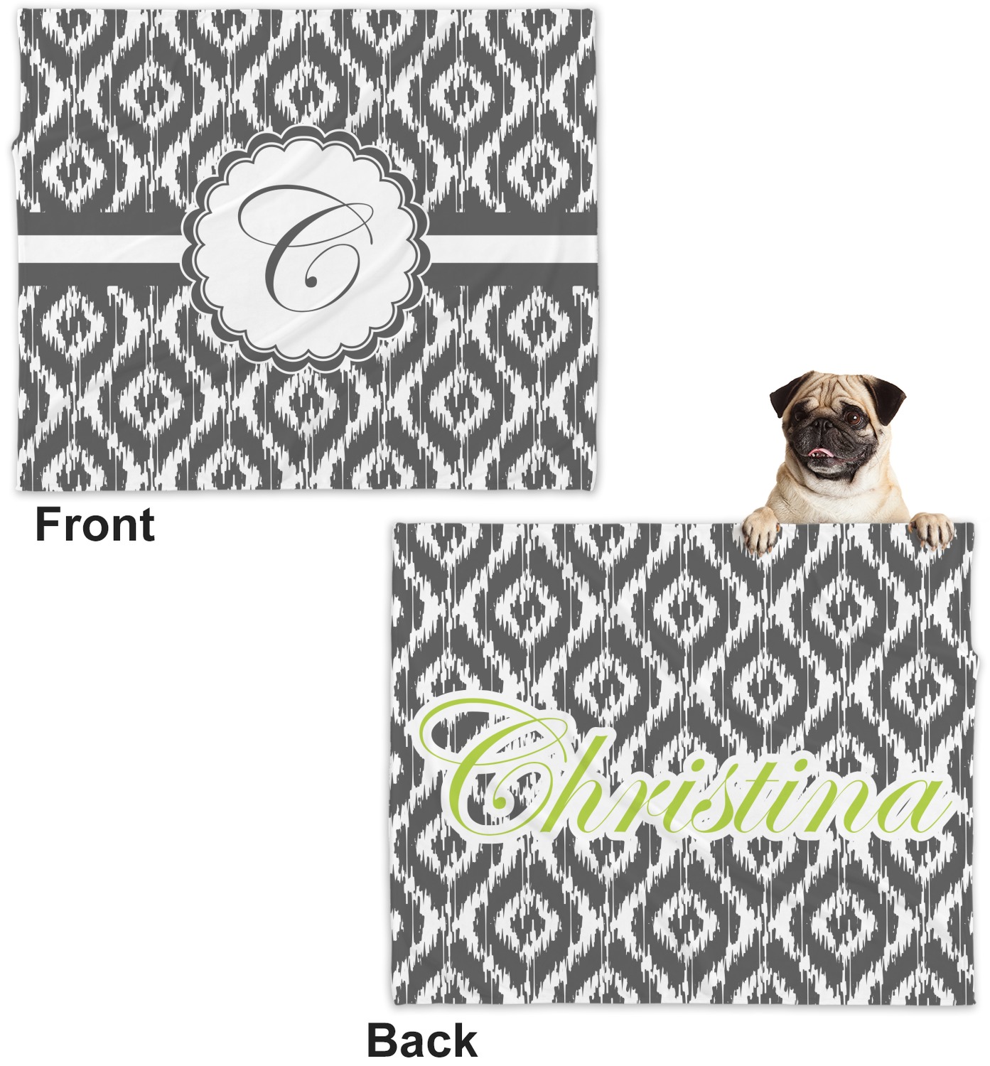 These dog blankets are crafted from a gentle, soft-to-the-touch, minky material. We print your customizations, either matching or differing, on both the top and underside of the blanket. These personalized dog blankets are available in two sizes: regular and large. Our regular size, at 40" x 30", accommodates small and some medium size dogs. At 60" x 50", our large dog blanket is a better fit for bigger breeds. Though specialized for dogs, these blankets still make a thoughtful gift for your favorite feline, or any other pet in mind!