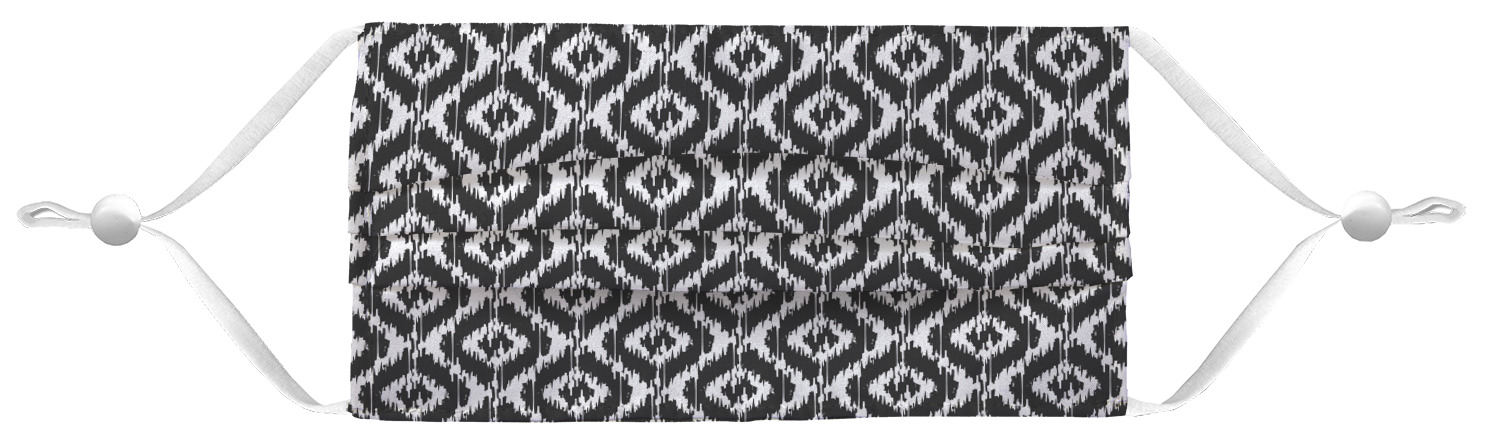 These fun face masks are 7" wide and 3.5" high. They feature pleats, adjustable ear loops, and are made with two layers of fabric. The top layer where your design is printed is a breathable polyester sheeting, while the inside layer is a soft microfiber polyester