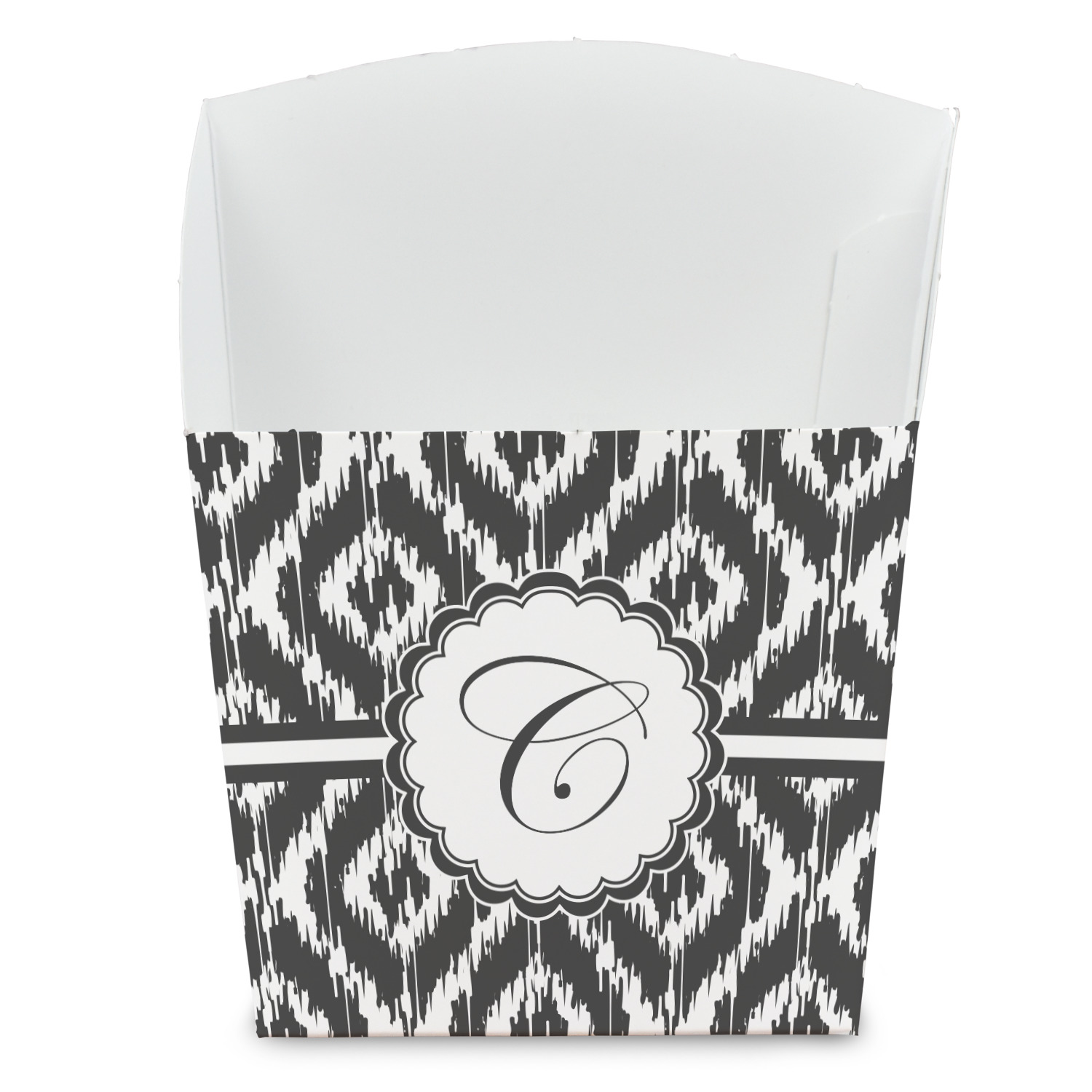 Since it is an open box, it works very well as a party snack cup (instead of plates) for different types of dry snacks and treats such as popcorn, cheezies, pretzels, chips, twizzlers, etc. This box can easily be carried with a drink all in one hand!