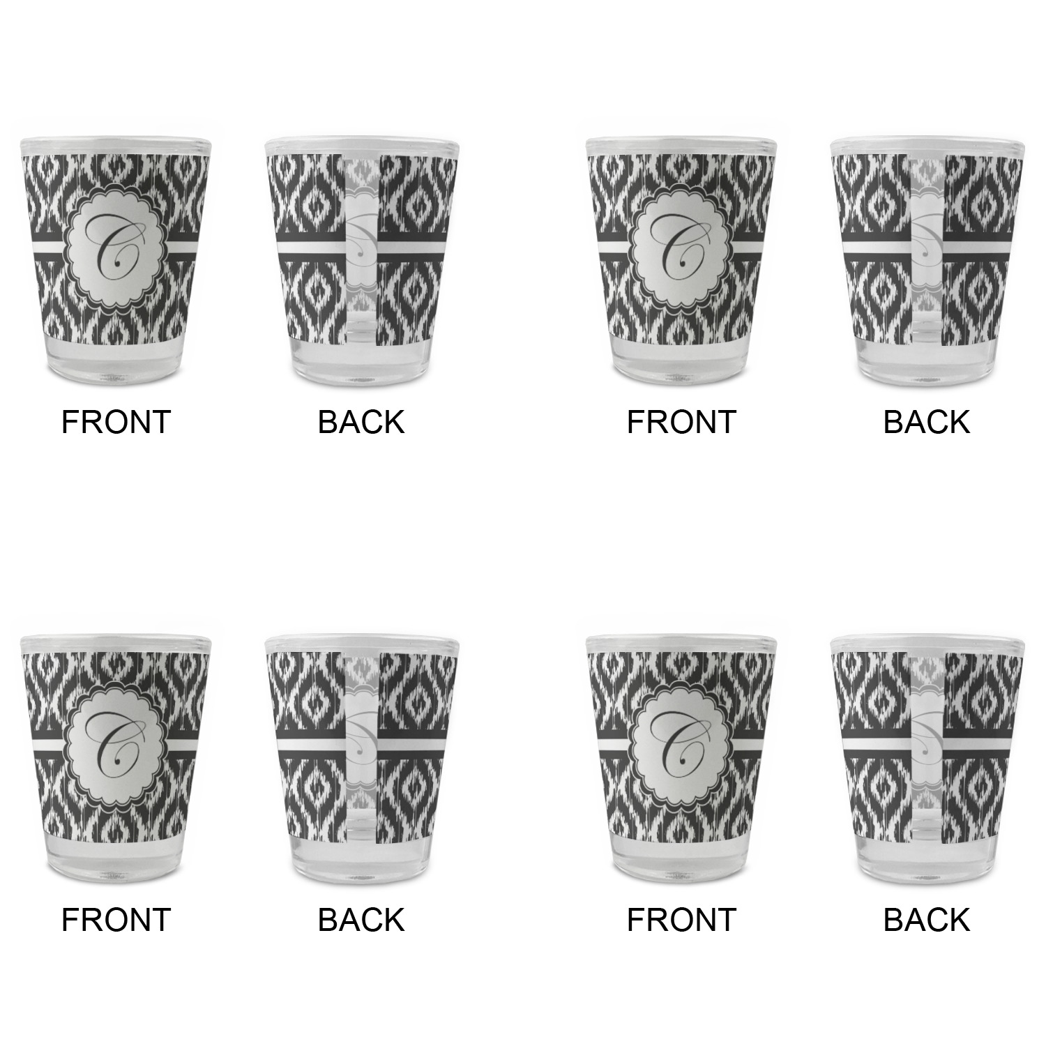 Made with frosted glass, these shot glasses are printed in full color with the design of your choice. They are a standard 1.5oz shot glass and are 2.4" tall. The print is wrapped around the shot glass in a full wrap and boldly displays your customization.