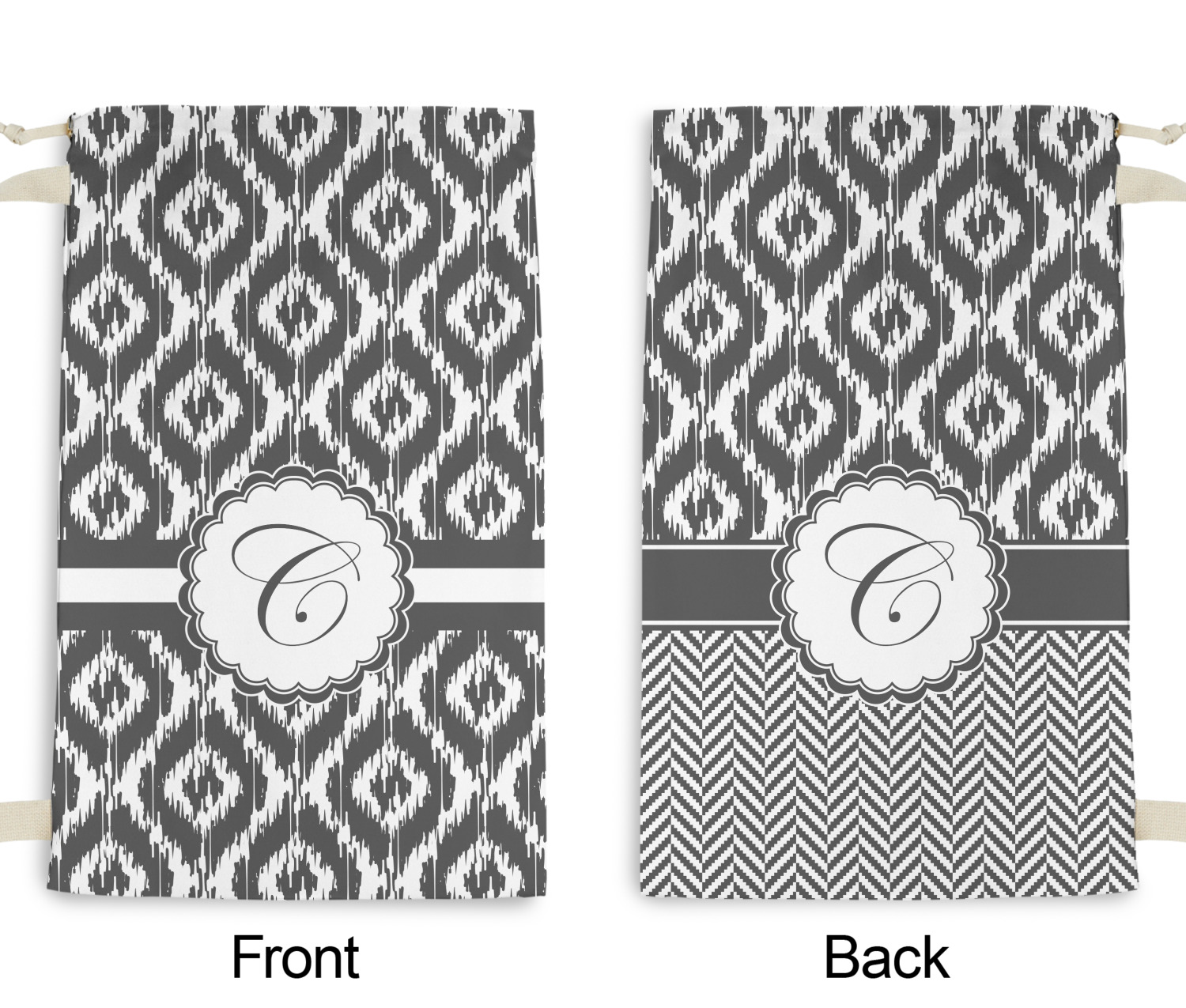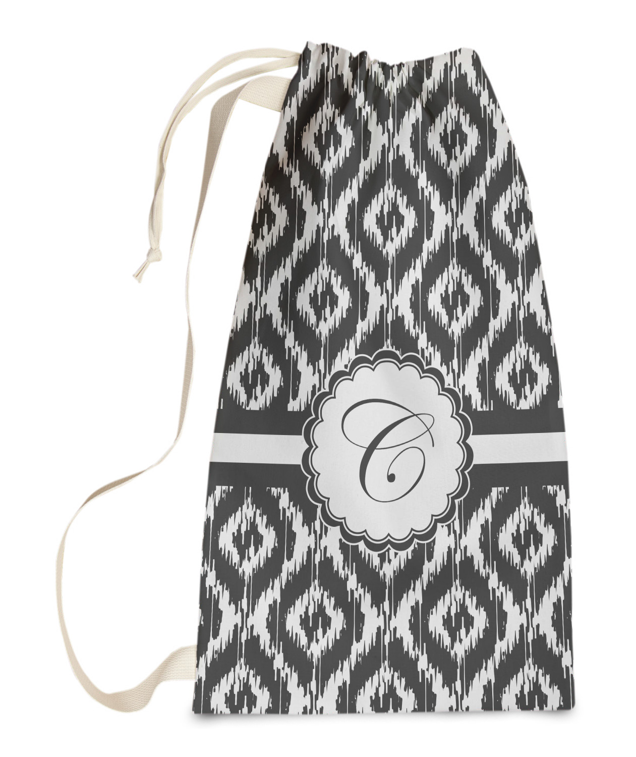 Carry your laundry in style with these customized laundry bags. Available in two sizes, featuring a natural colored woven strap and a cinch cord, these bags hold a lot of clothes or anything else you want to fit in them.