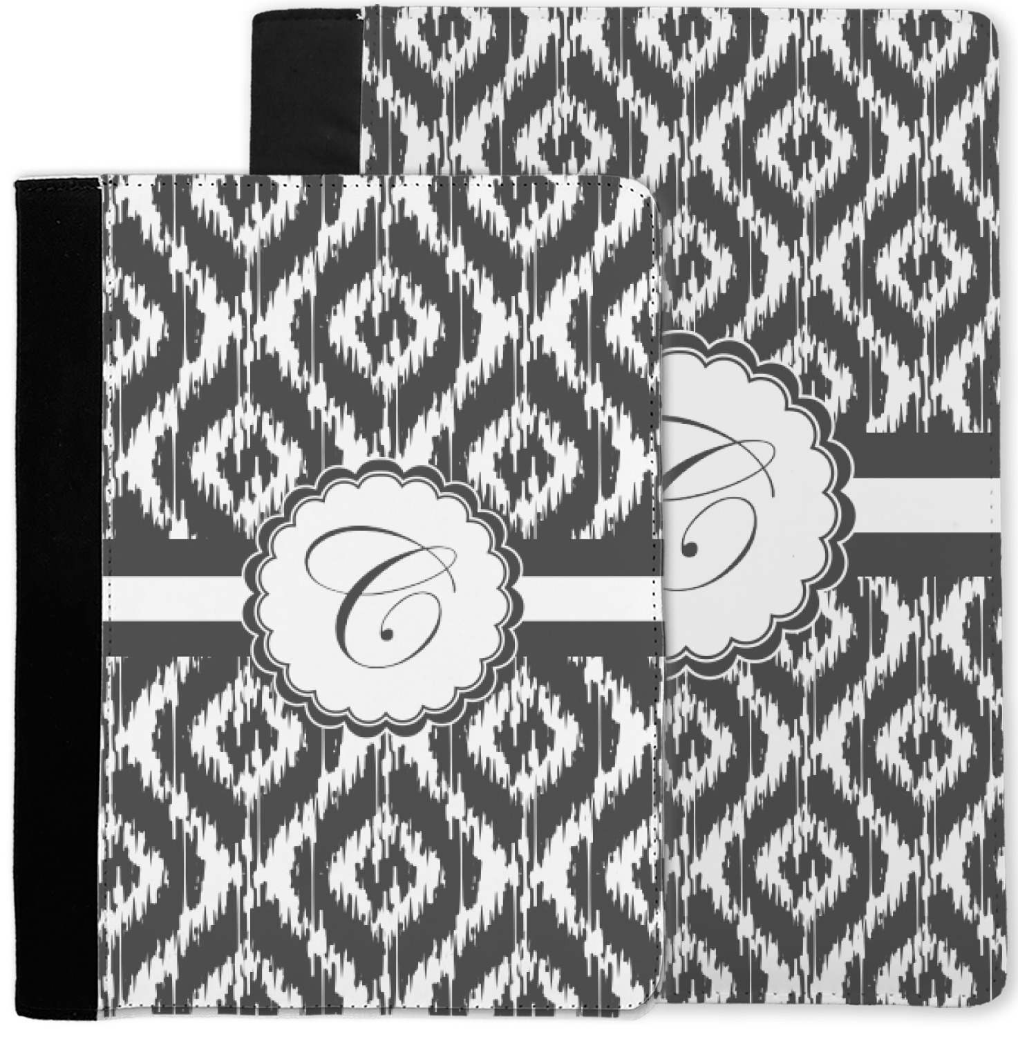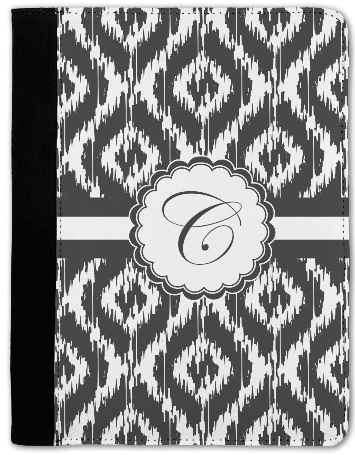 These personalized padfolios are made from a black, polyester microfiber and features a standard, 50-page notepad. However, these black padfolios can accommodate a pad with up to 100 pages. This model also features a slot pocket for any loose sheets of paper, small pockets for business cards, and an elastic band to secure a pen. We print your personalization across the front of this notepad portfolio in bright, vibrant color. These padfolios come in 2 sizes, Medium - approximately 10.25" x 8" for 5" x 8" paper and Large - approximately 12.5" x 8.5" for 8.5" x 11" paper.