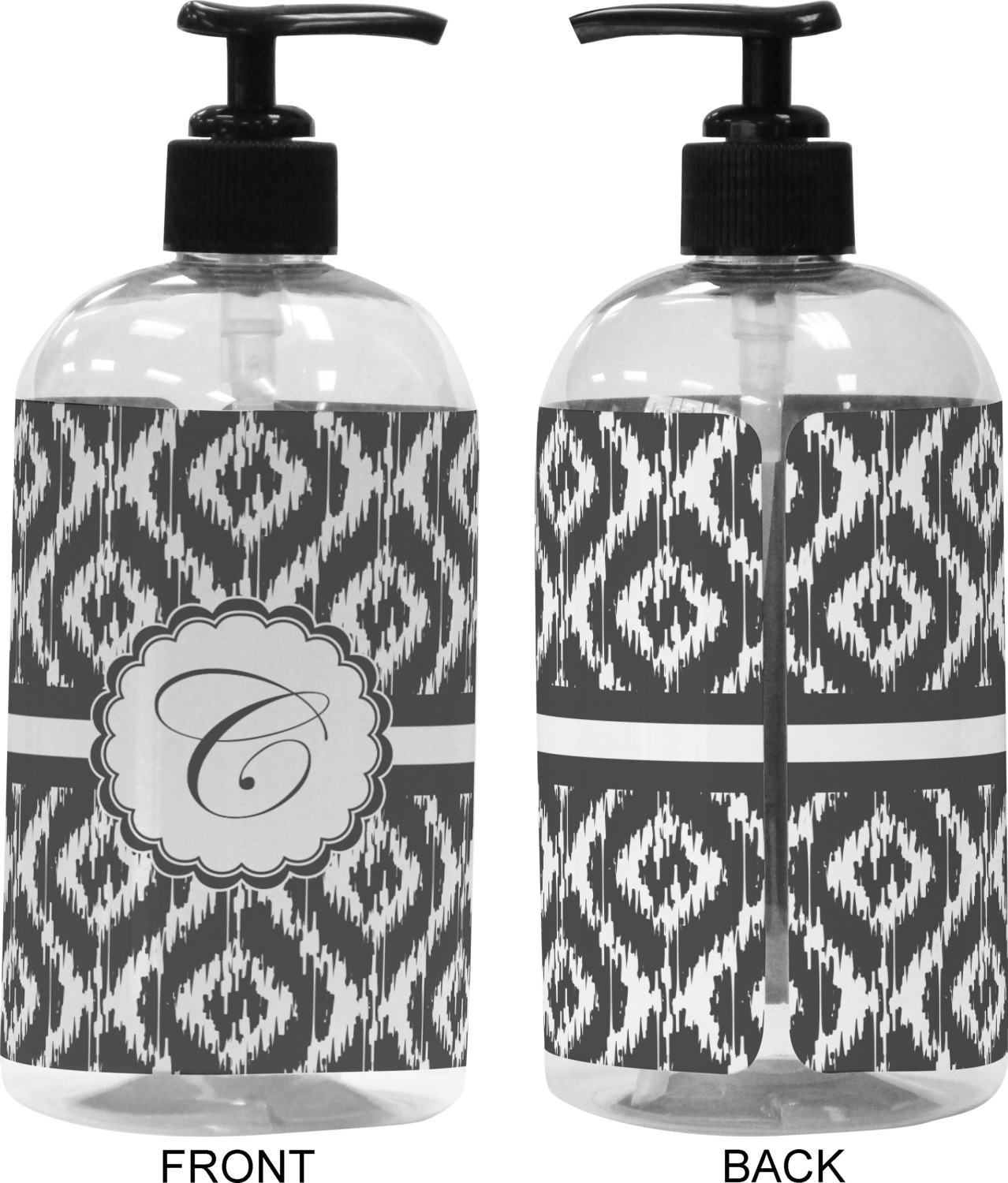 We adhere and wrap your custom printed design around the clear plastic bottle; there is a slight gap at the back for you to see the liquid level. Your design is printed on high gloss vinyl with eco-solvent inks and completely waterproof and will not fade or deteriorate over time. The vinyl is machine cut and adhered by hand to the clear plastic bottle.
