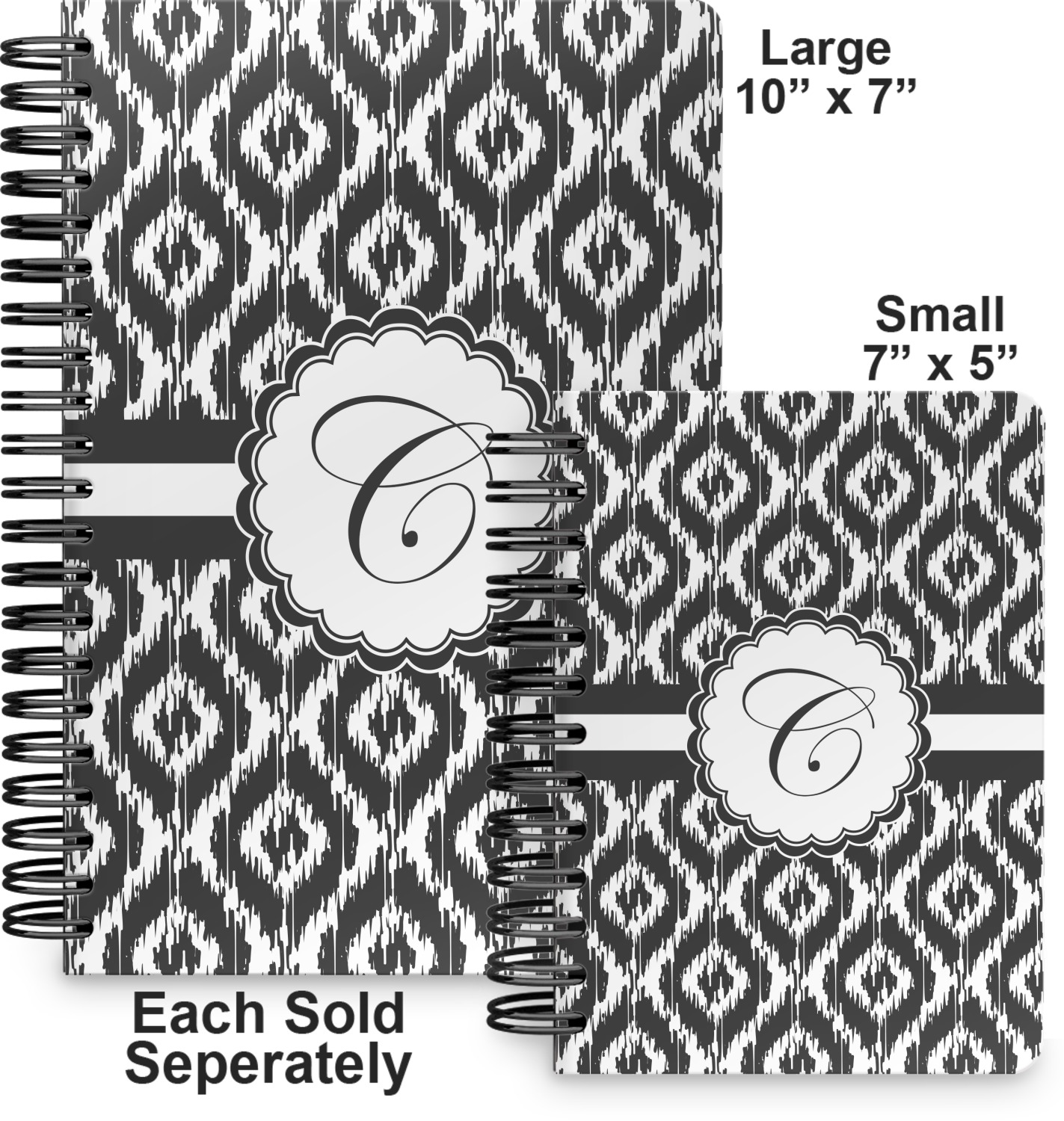 This spiral journal is available in two sizes. The first size is more suitable for a tote or purse and measures at 7" x 5". The second option is a bit larger, at 10" x 7", and is a better fit for a briefcase or backpack.