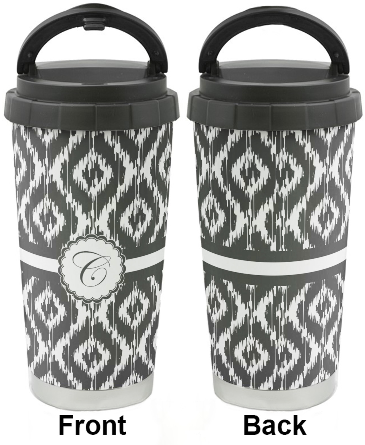 This sleek and tapered 16 oz stainless steel travel cup is a perfect fit in the hand. With the strip of visible stainless steel on the bottom, you'll be feeling classy!
