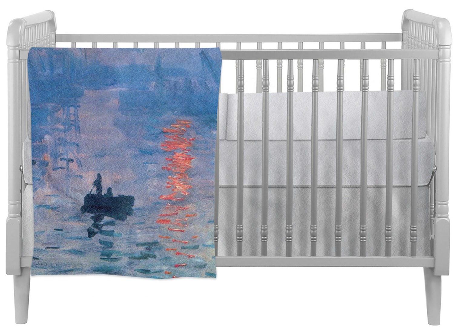 This beautiful painting, or a piece of this painting, will go quite nicely on any product of your choosing. The color palette will surely bring a calming sensation to whatever is decorated with this classic piece. If you love France, water, sunrises, or just the color blue, this design is the perfect choice for you.