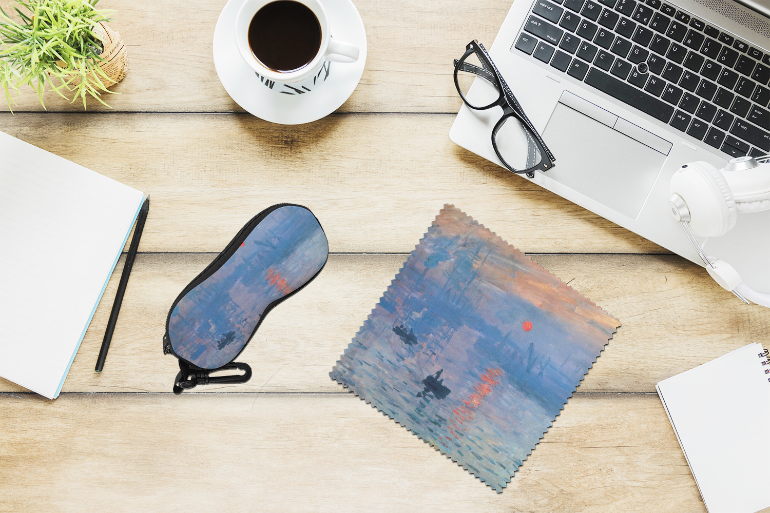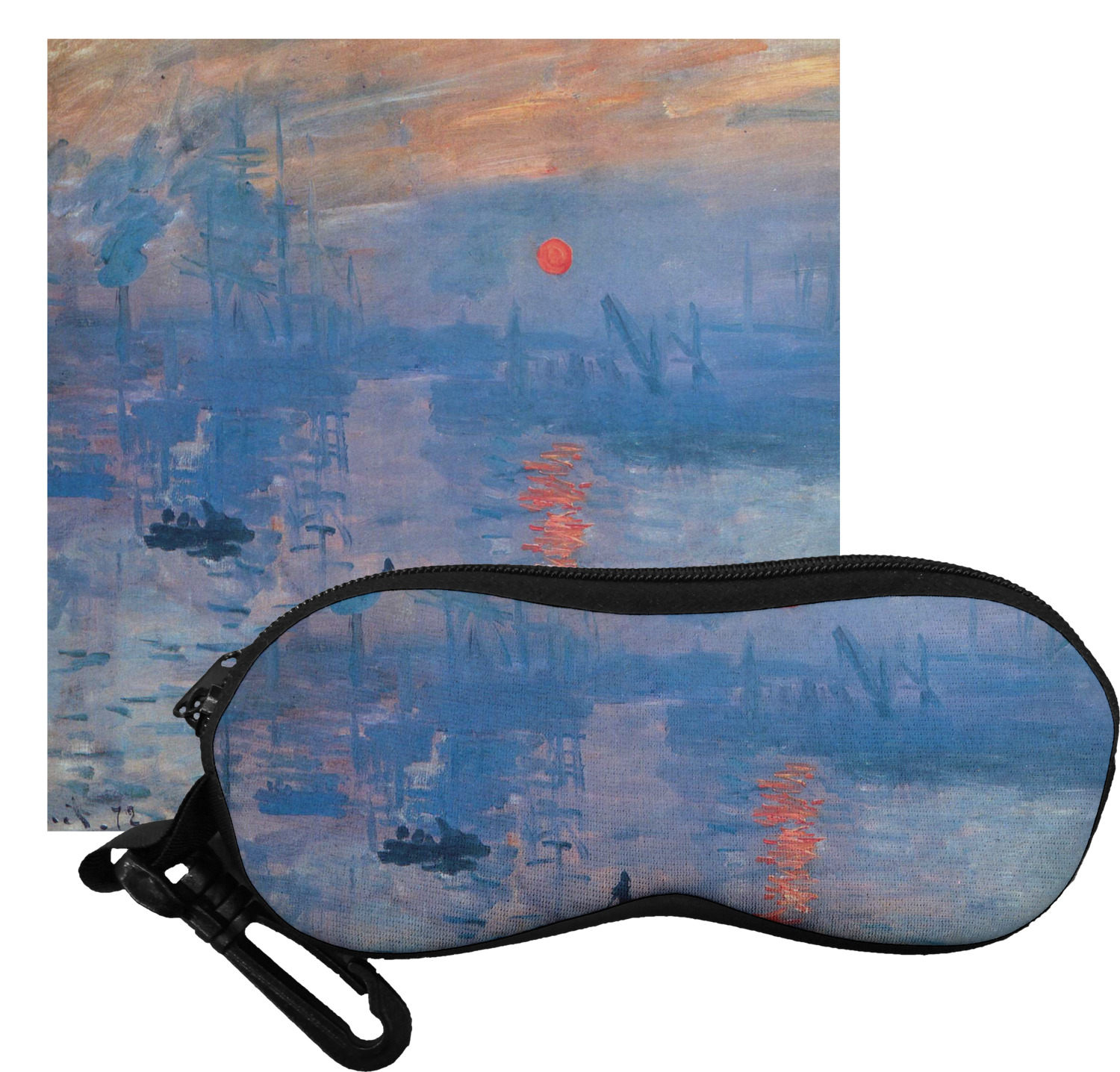 This beautiful painting, or a piece of this painting, will go quite nicely on any product of your choosing. The color palette will surely bring a calming sensation to whatever is decorated with this classic piece. If you love France, water, sunrises, or just the color blue, this design is the perfect choice for you.