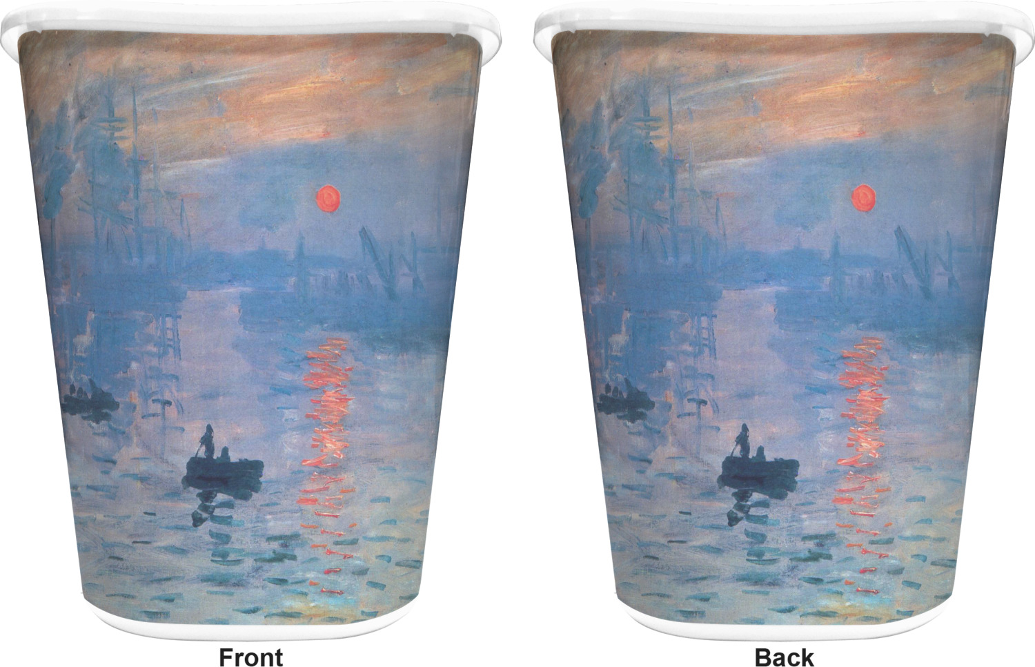 You can choose to purchase these decorative wastebaskets in either a white or a black color that will show on the base and the upper rim. Your customization is printed on a high-gloss, fine-quality vinyl adhesive, and you can choose to either have this adhesive applied to one side only or to both sides. As such, this plastic wastebasket can be single-sided or double-sided, depending on your creative vision. Your customization is printed using durable inks, making the design waterproof and resistant to fading over time.