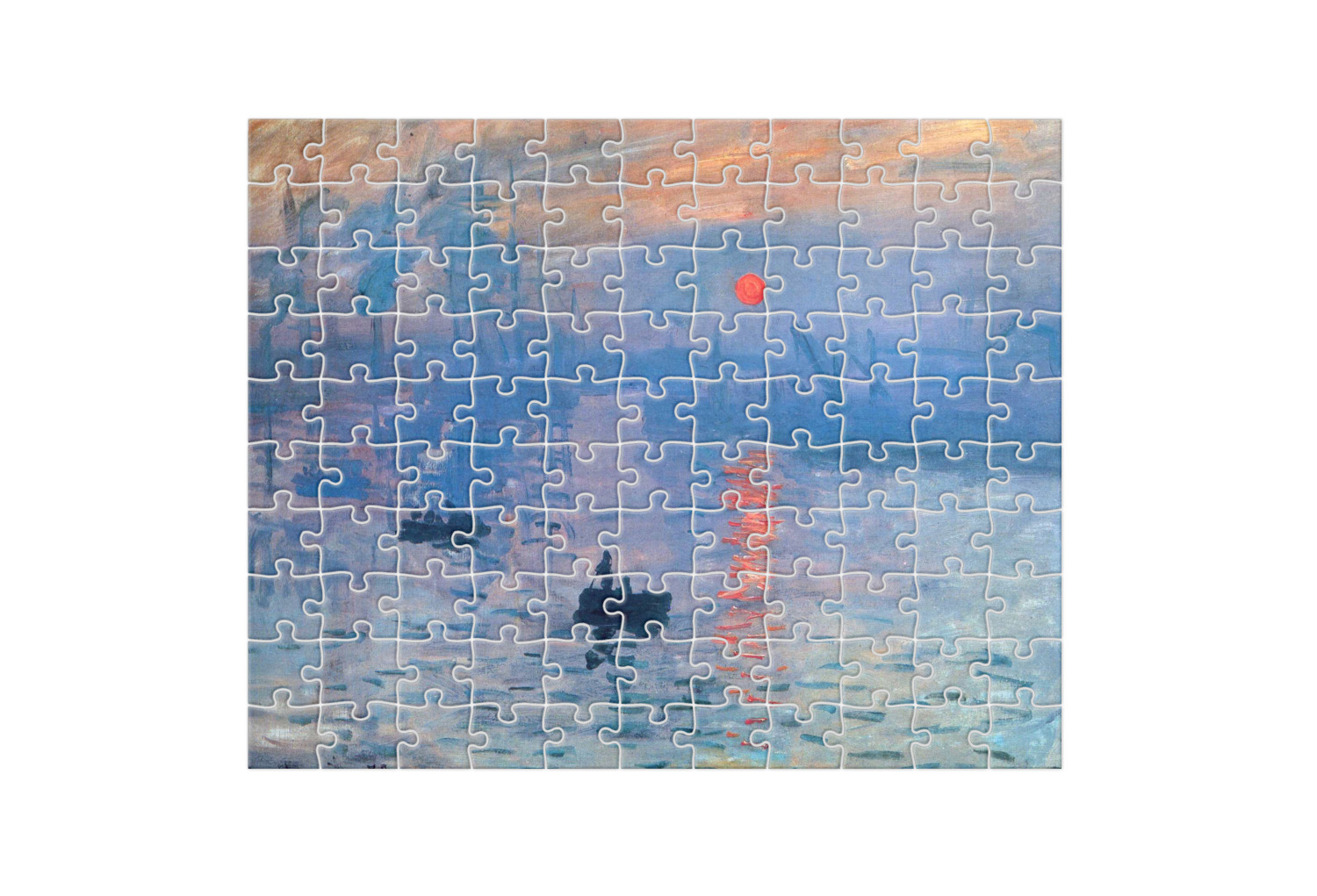 This beautiful painting, or a piece of this painting, will go quite nicely on any product of your choosing. The color palette will surely bring a calming sensation to whatever is decorated with this classic piece. If you love France, water, sunrises, or just the color blue, this design is the perfect choice for you.