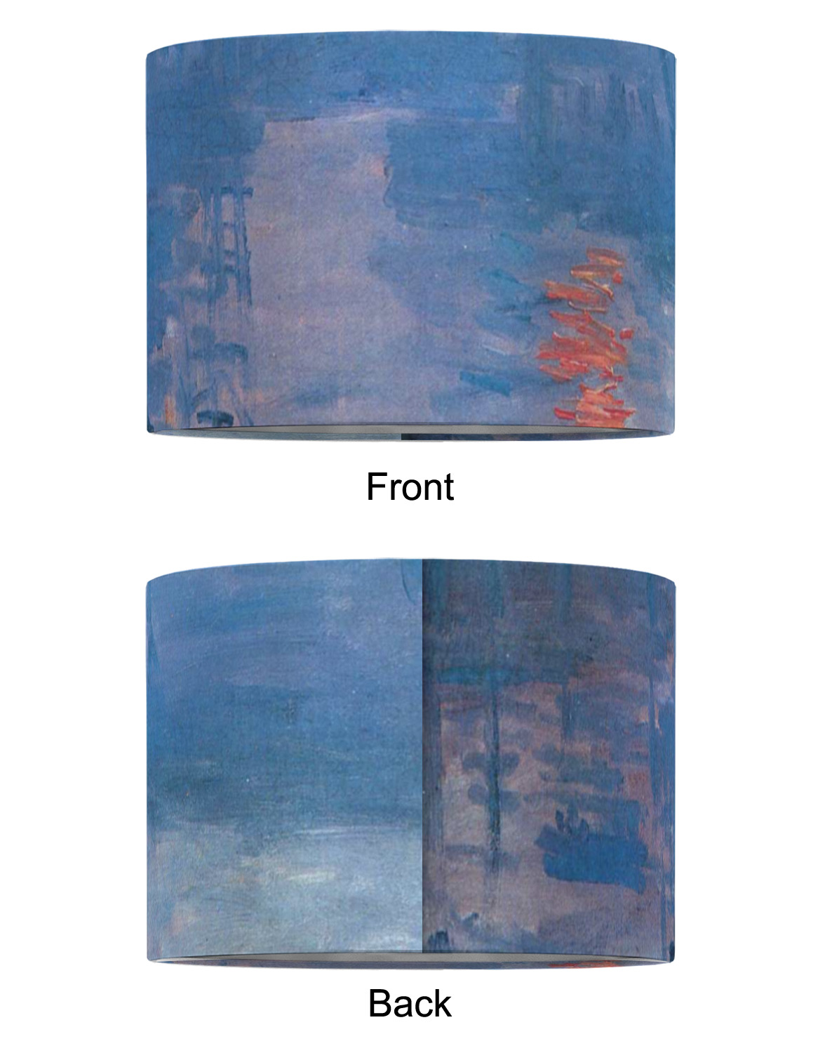 This beautiful painting, or a piece of this painting, will go quite nicely on any product of your choosing. The color palette will surely bring a calming sensation to whatever is decorated with this classic piece. If you love France, water, sunrises, or just the color blue, this design is the perfect choice for you.
