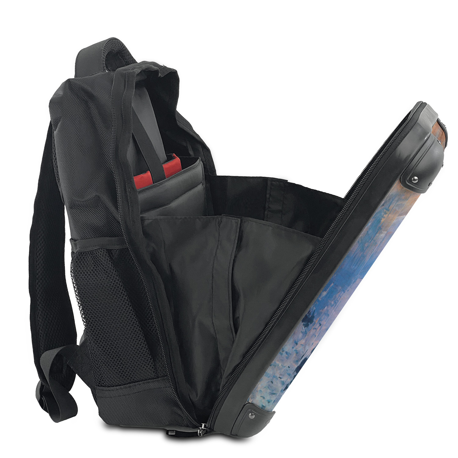 Aside from the sleeves there is a large open space in the backpack to ensure you can fit all of your required belongings. The hard outer shell on the outside helps protect your possessions inside and when customized adds that personal touch to make the backpack distinctly yours and unlike anyone elses.