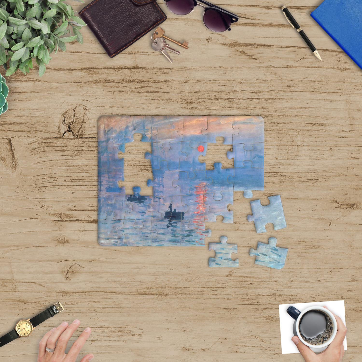 We print our puzzles on thick white chipboard in vibrant colors, then laminate the chipboard and die cut your puzzle. Your jigsaw puzzle is shipped to you in a box with the image of the puzzle on the box.