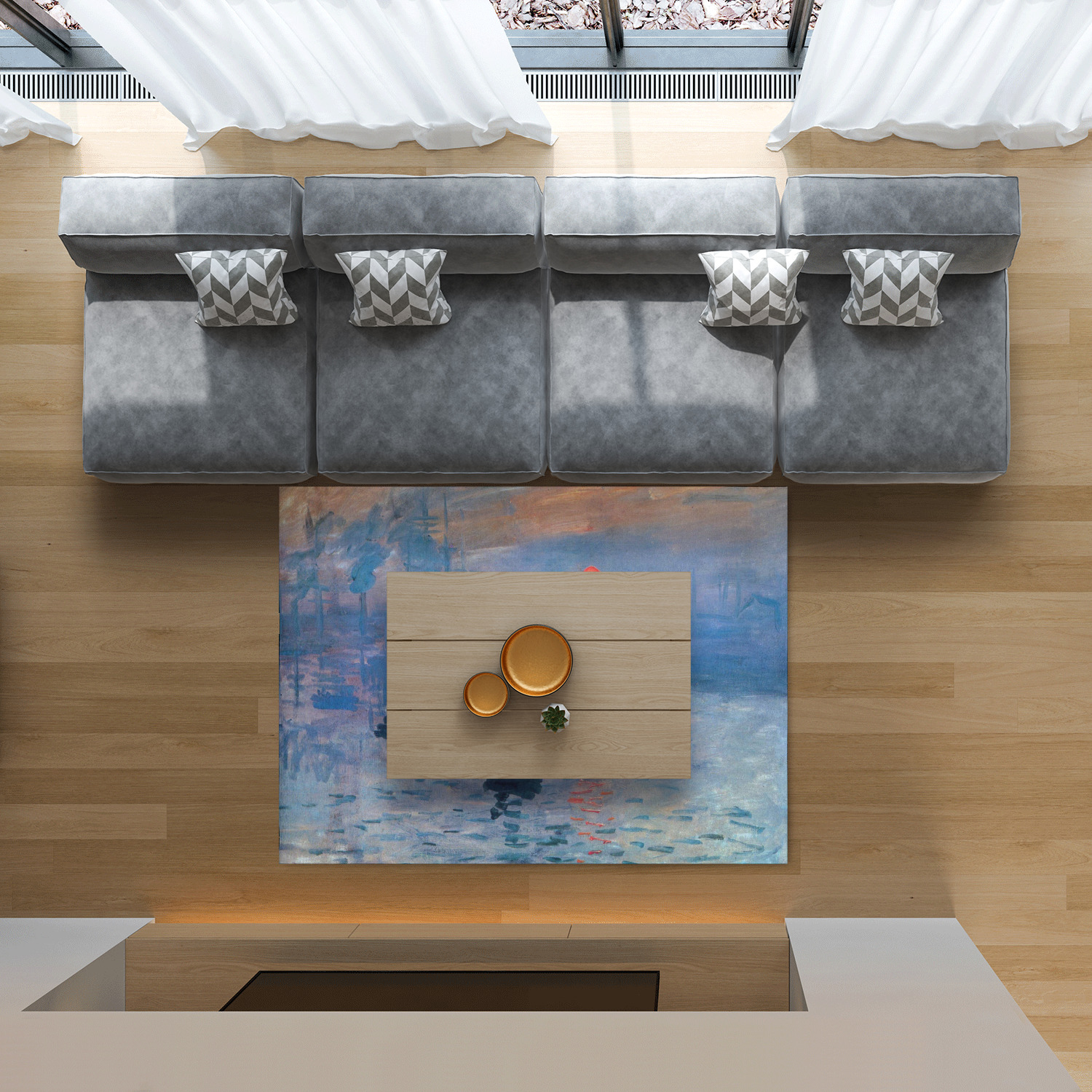 This beautiful painting, or a piece of this painting, will go quite nicely on any product of your choosing. The color palette will surely bring a calming sensation to whatever is decorated with this classic piece. If you love France, water, sunrises, or just the color blue, this design is the perfect choice for you.