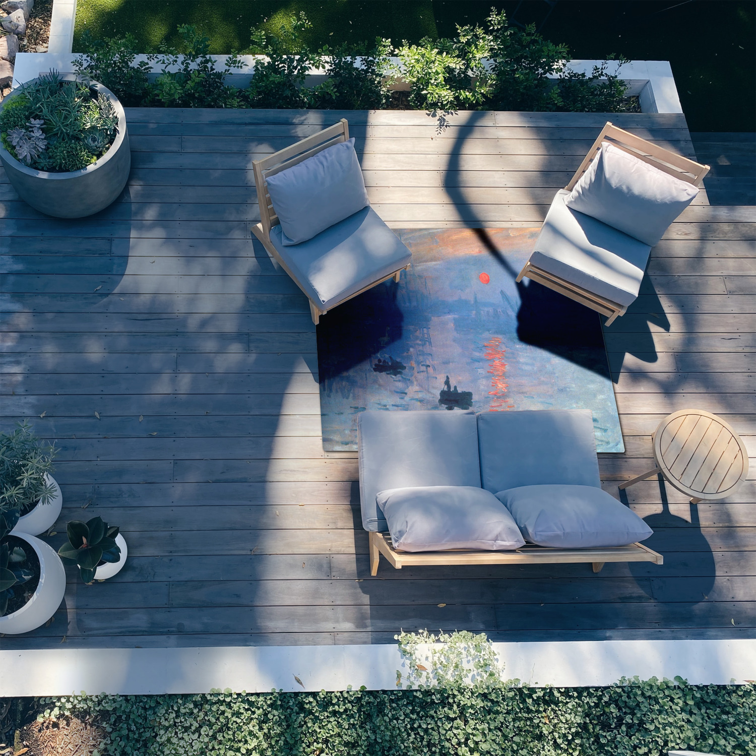 Our custom patio area rugs are velvety soft and smooth, with a short pile, beautiful sewn corners and edges for a refined and exquisite finished look. The poly chenille face is printed with your design and is sure to brighten up any room with its fabulous look. They have just enough cushion to feel comfortable under foot but not soak up water in the weather and offer a quick drying material.