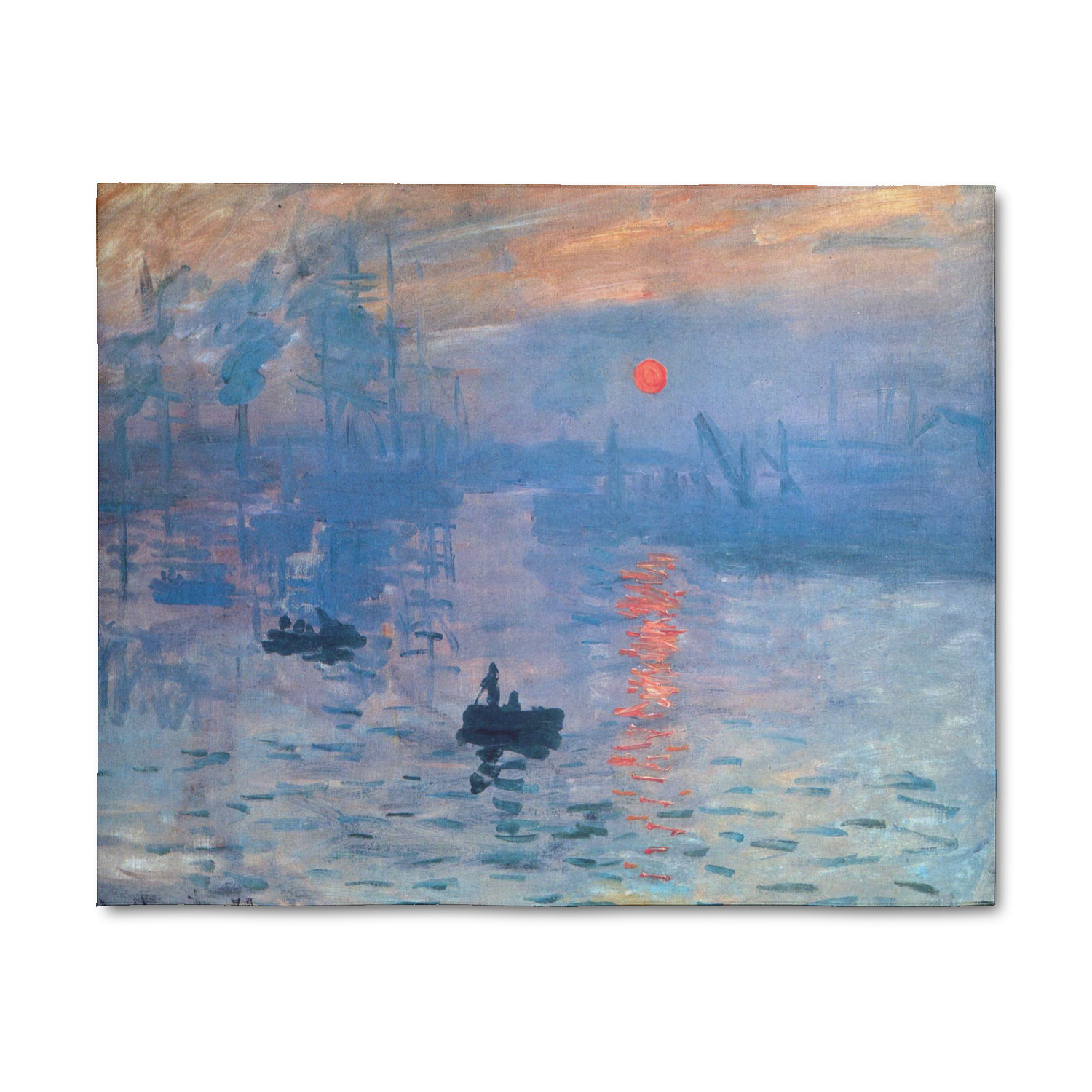 This beautiful painting, or a piece of this painting, will go quite nicely on any product of your choosing. The color palette will surely bring a calming sensation to whatever is decorated with this classic piece. If you love France, water, sunrises, or just the color blue, this design is the perfect choice for you.