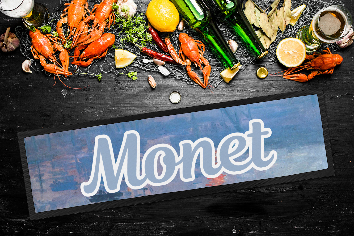 This beautiful painting, or a piece of this painting, will go quite nicely on any product of your choosing. The color palette will surely bring a calming sensation to whatever is decorated with this classic piece. If you love France, water, sunrises, or just the color blue, this design is the perfect choice for you.