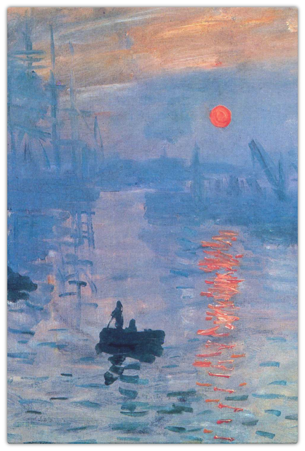 Claude Monet's Impression, Sunrise, one of his more well known harbor paintings, depicts the port of Le Havre as the sun is just coming up to begin the day. Using the word "impression" in his title, Monet hoped that he would receive better feedback from art critics who were not welcoming to the new and loose style of impressionism. By choosing Le Havre, Monet's home town, as a subject, he seems to be emphasizing the renewal and rebirth of France at that time.