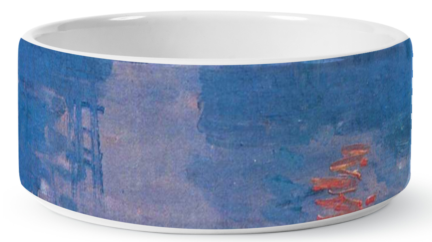 This beautiful painting, or a piece of this painting, will go quite nicely on any product of your choosing. The color palette will surely bring a calming sensation to whatever is decorated with this classic piece. If you love France, water, sunrises, or just the color blue, this design is the perfect choice for you.