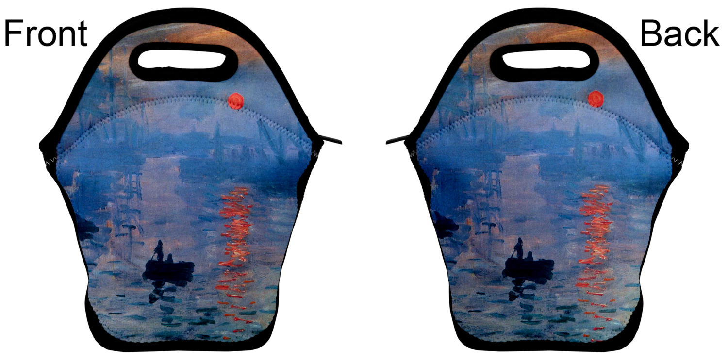 This beautiful painting, or a piece of this painting, will go quite nicely on any product of your choosing. The color palette will surely bring a calming sensation to whatever is decorated with this classic piece. If you love France, water, sunrises, or just the color blue, this design is the perfect choice for you.