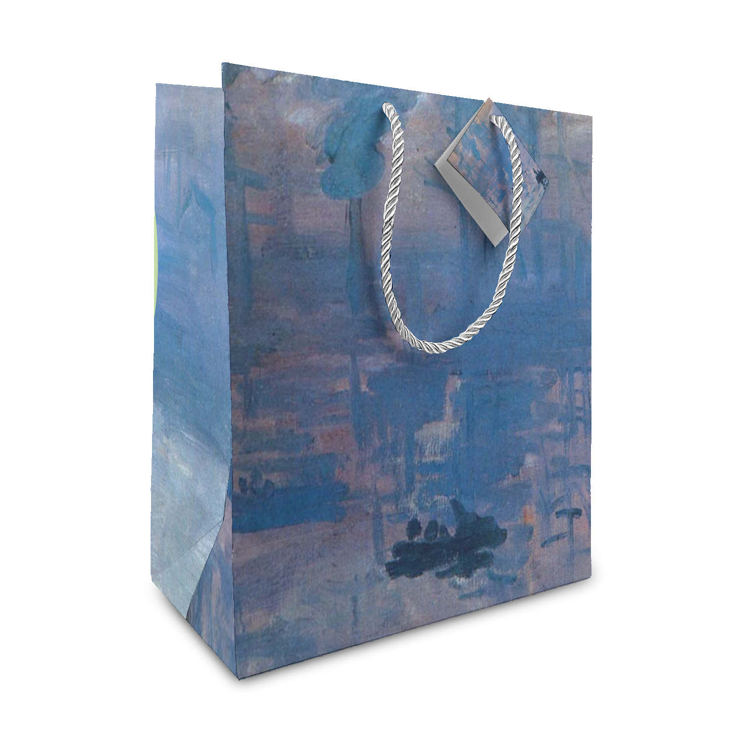 This beautiful painting, or a piece of this painting, will go quite nicely on any product of your choosing. The color palette will surely bring a calming sensation to whatever is decorated with this classic piece. If you love France, water, sunrises, or just the color blue, this design is the perfect choice for you.