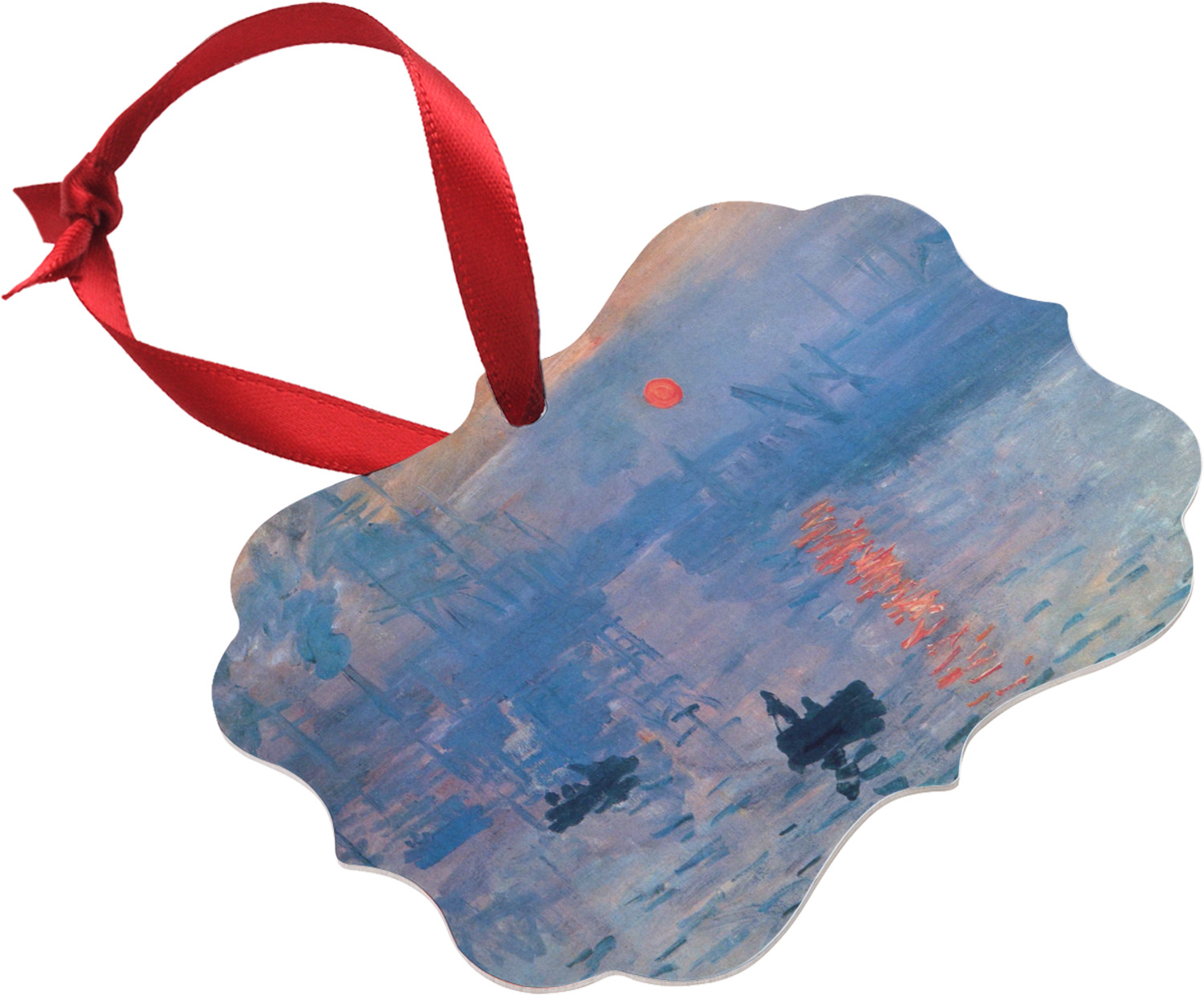 This beautiful painting, or a piece of this painting, will go quite nicely on any product of your choosing. The color palette will surely bring a calming sensation to whatever is decorated with this classic piece. If you love France, water, sunrises, or just the color blue, this design is the perfect choice for you.