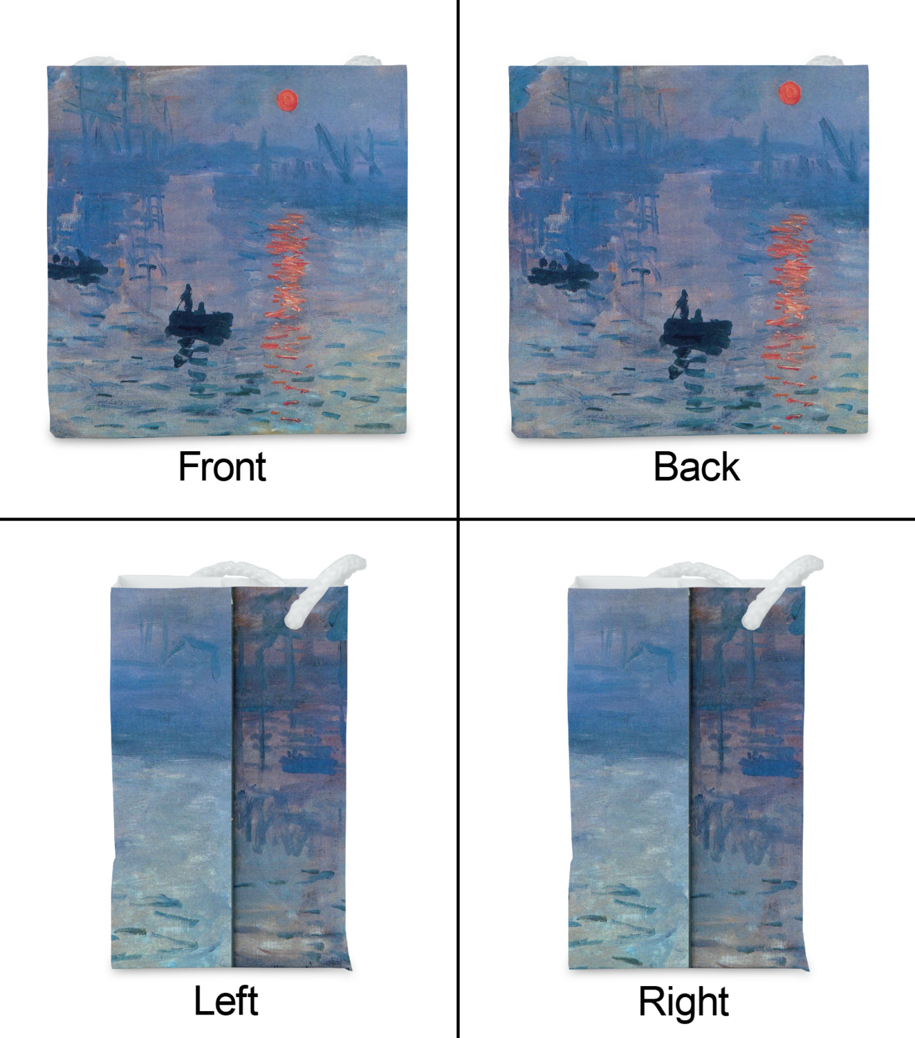 This beautiful painting, or a piece of this painting, will go quite nicely on any product of your choosing. The color palette will surely bring a calming sensation to whatever is decorated with this classic piece. If you love France, water, sunrises, or just the color blue, this design is the perfect choice for you.