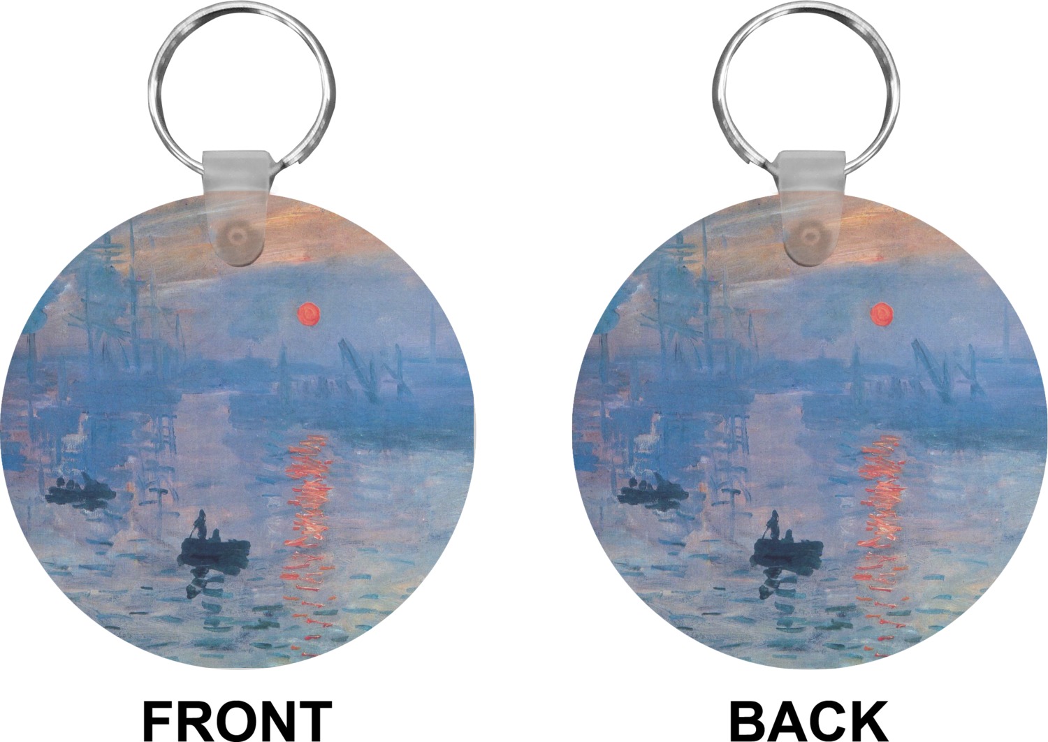 Our personalized keychains attach to the included metal, split key ring with a plastic, removable snap. Since a metal ring is included with your purchase, you have the liberty to keep your keys together on the ring, with or without your unique keychain. We offer this keychain in three different shapes: circle, heart, or diamond. We print your personalized design(s) on both sides of the key chain, and the surface has a glossy, reflective finish that only emphasizes your design. Each keychain is approximately 2.25 by 2.25 inches.