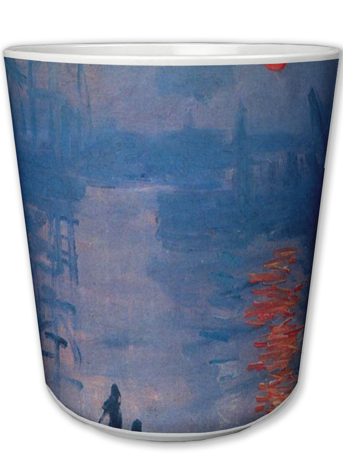 This beautiful painting, or a piece of this painting, will go quite nicely on any product of your choosing. The color palette will surely bring a calming sensation to whatever is decorated with this classic piece. If you love France, water, sunrises, or just the color blue, this design is the perfect choice for you.