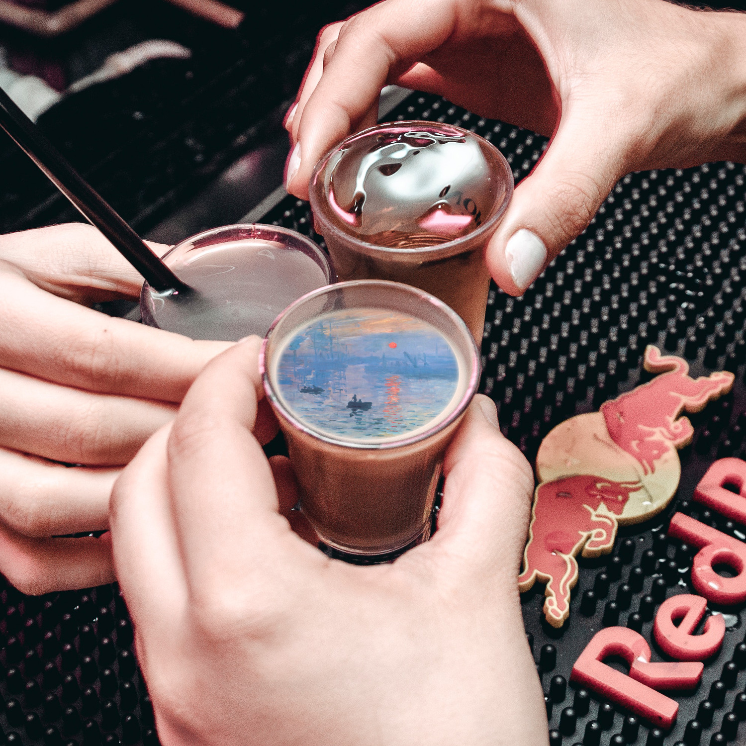 Your customized drink toppers can be placed on top of cold or hot beverages such as cocktails, beer, wine, champagne, soda, water, ice tea, nitro cold brew, milkshakes, smoothies to hot tea, coffee, lattes, espressos etc. It is recommended that these toppers be placed on top of a foam layer for best results.