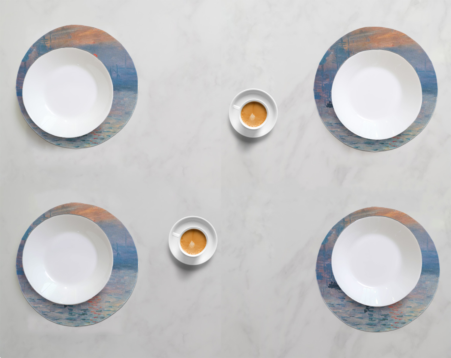This beautiful painting, or a piece of this painting, will go quite nicely on any product of your choosing. The color palette will surely bring a calming sensation to whatever is decorated with this classic piece. If you love France, water, sunrises, or just the color blue, this design is the perfect choice for you.