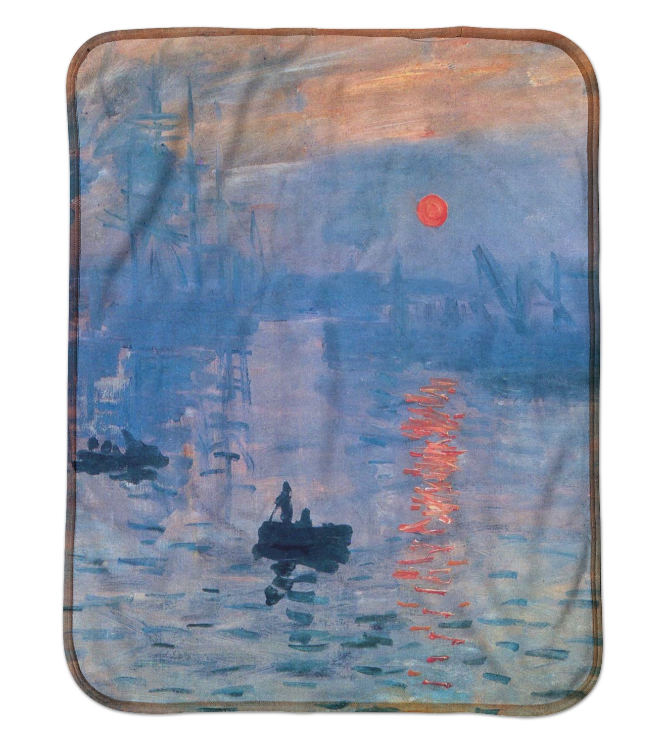 This beautiful painting, or a piece of this painting, will go quite nicely on any product of your choosing. The color palette will surely bring a calming sensation to whatever is decorated with this classic piece. If you love France, water, sunrises, or just the color blue, this design is the perfect choice for you.