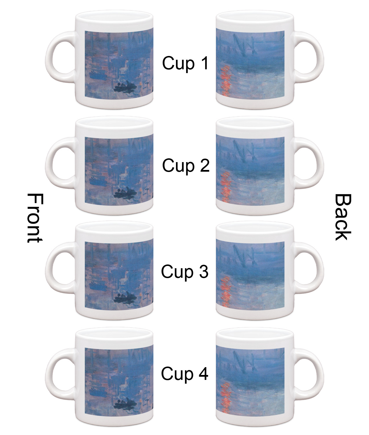 Each of our espresso mugs is a ceramic material sure to keep your drink warm. Personalize one cup for yourself, or order a set of 4! Its the perfect little gift for any coffee lover! We carry two sizes for you to personalize - 3 oz. (approx. 3.25" x 2.325" x 2.625") or 6 oz. (approx. 4" x 2.9" x 2.9"). Our 3 oz. mug is perfect for that single shot espresso while our 6 oz. mug can be your next favorite cappuccino cup holding two shots of espresso!