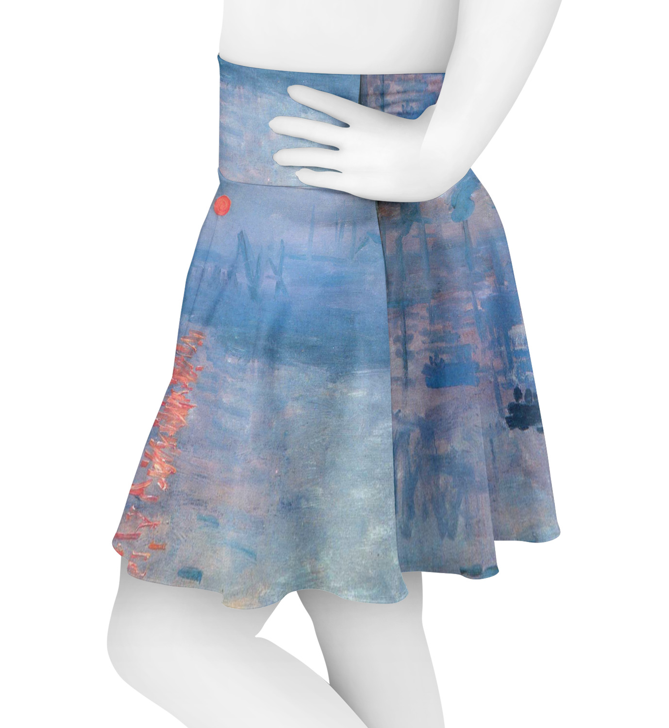 This skirt is a fun skater style that flares out (especially if you take a twirl in it!). The waist band is about 4" thick to wear as a high wasted skirt, but can easily be folded down to become a low waisted skirt. The band hugs you tight while the rest of the skirt is very flowy. The material is a comfortable, casual material that has a very slight sheen to it. It comes in 6 different sizes ranging from XS to 2XL. This skirt is perfect as a casual skirt, but can be easily dressed up to be a more formal skirt.