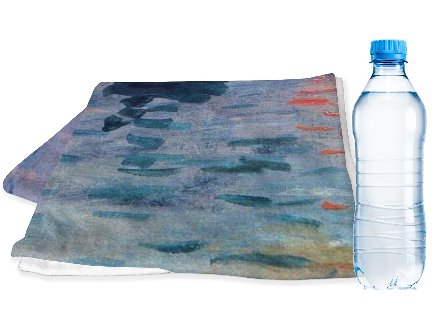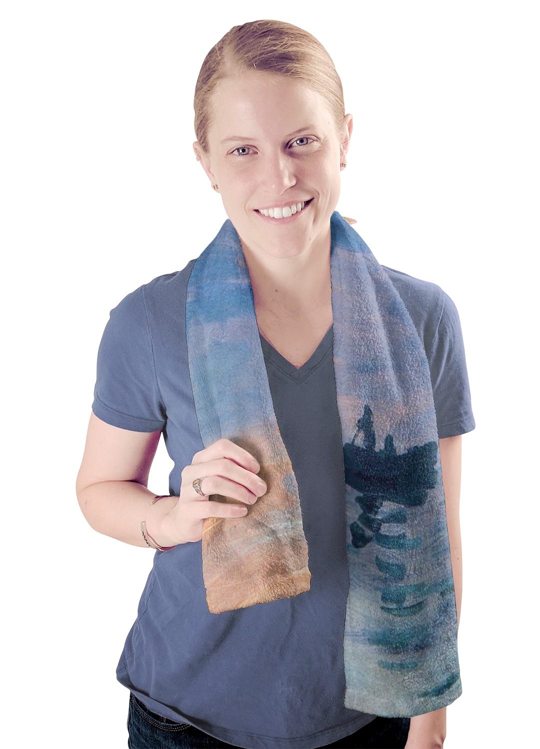 This beautiful painting, or a piece of this painting, will go quite nicely on any product of your choosing. The color palette will surely bring a calming sensation to whatever is decorated with this classic piece. If you love France, water, sunrises, or just the color blue, this design is the perfect choice for you.